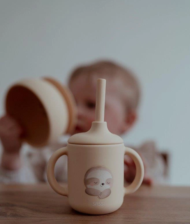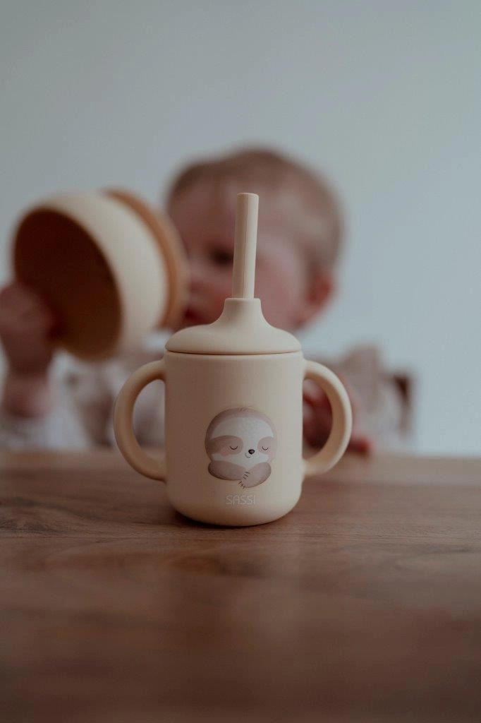 Kubek silikonowy z rurką dla dzieci Leniwiec SASSI
