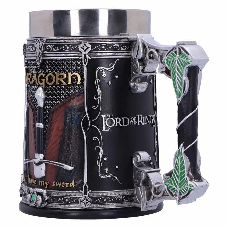 Kufel wzorem nawiązujący do Aragorna, Legolasa i Gimli'ego. Na kuflu jest umieszczony cytat: "You Have My Sword, and My Bow, and My Axe". Produkt idealny na wyjątkowy prezent dla zagorzałej fanki lub fana.
