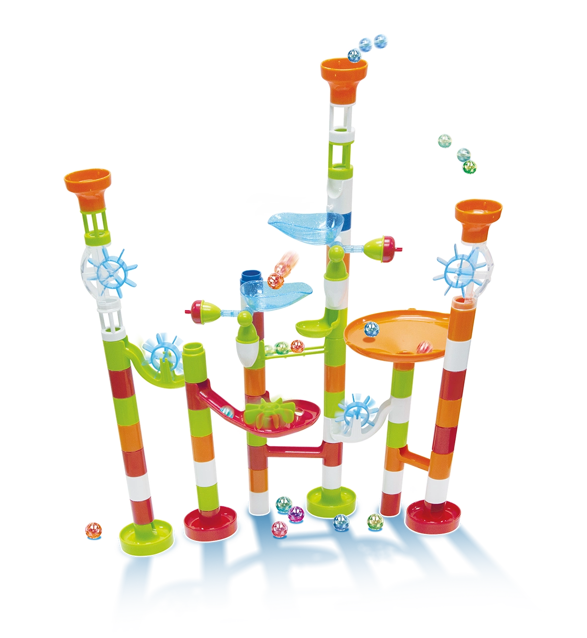 Kulki nabierają prędkości w labiryncie, przecinają mosty, wirują w kołach i wypadają bez problemu.