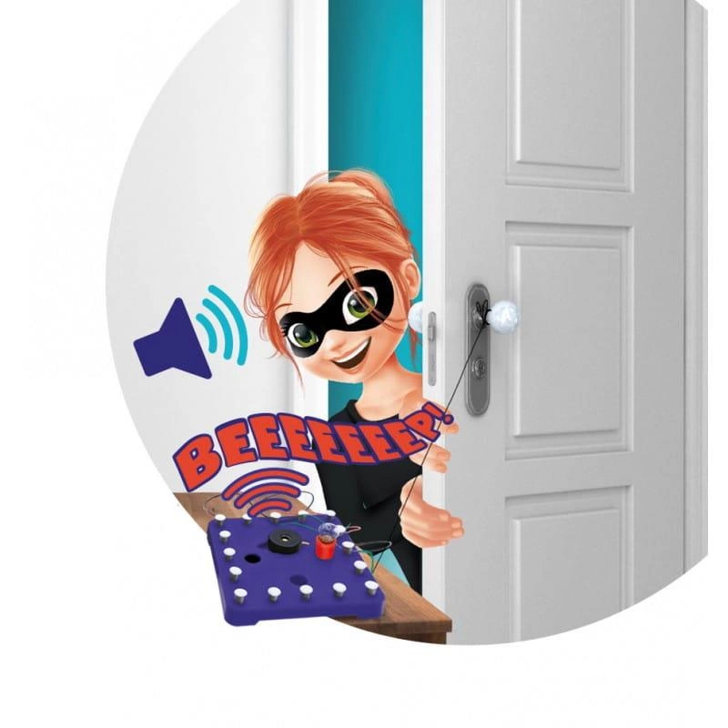 Zadanie polega na połączeniu na płytce obwodu komponentów takich jak: żarówki, dzwonki, silniczek, oporniki... Dzieci mają okazję obserwować, jak prąd przechodzi przez poszczególne części obwodu.
