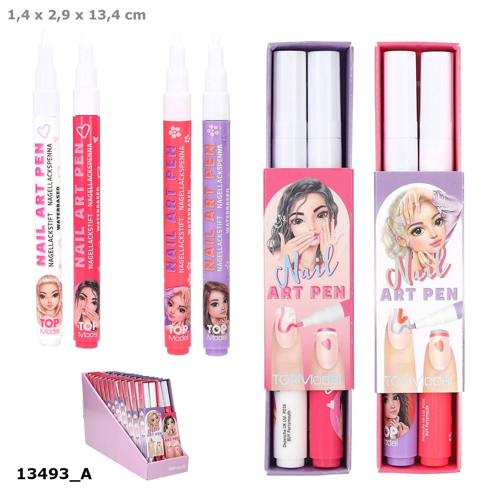 Lakier w pisaku, zestaw 2 sztuk TOPModel Beauty, 2 wzory: różowy+biały oraz brzoskwiniowy+fiolet, na bazie wodny, 1 pisak= 2 ml.
