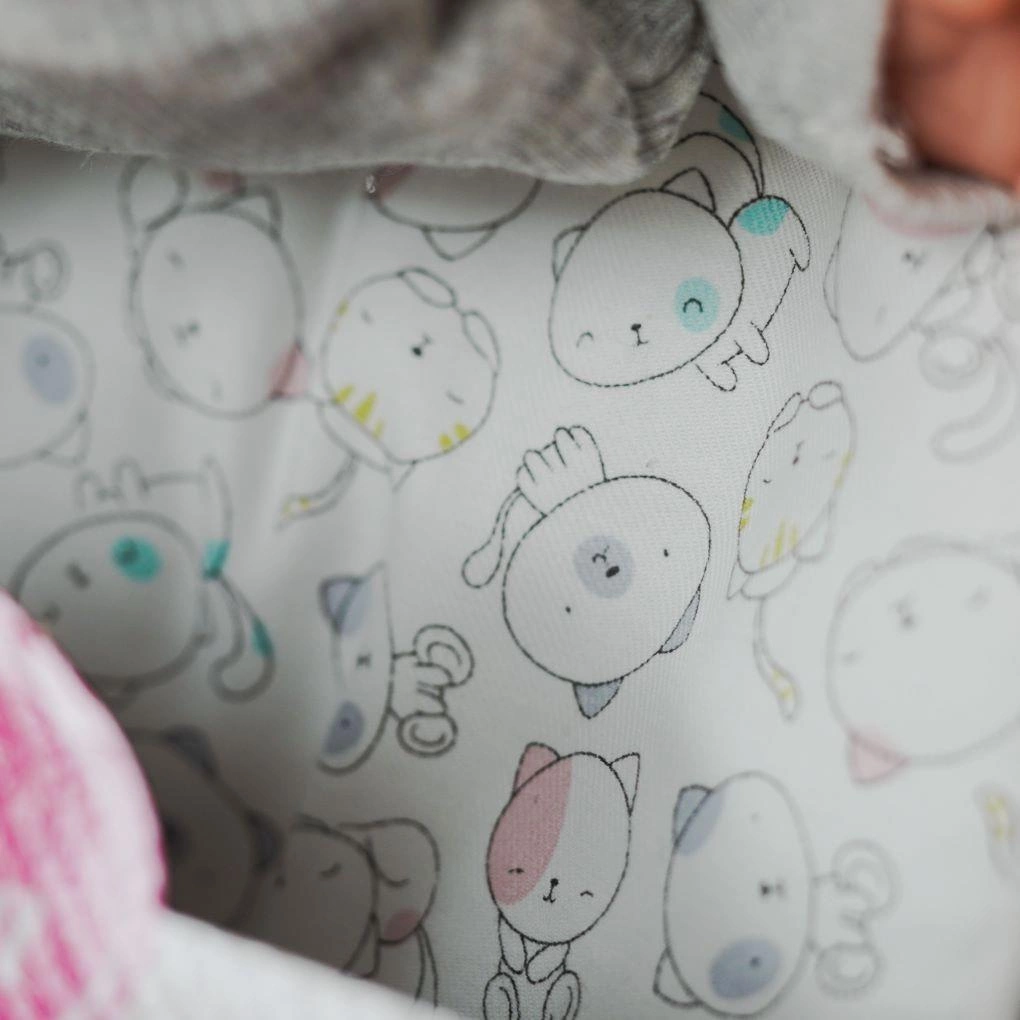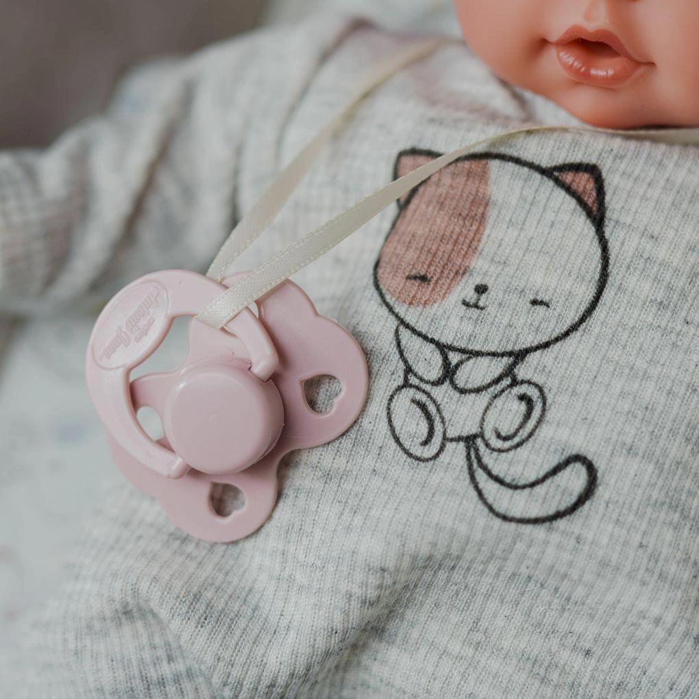 Dziewczynka ma na sobie długie body w kolorze szarym wykonane z przyjemnego w dotyku materiału. Ubranko zapinane jest z tyłu na rzepę, a to pozwoli na łatwiejszą obsługę. Dekorację ubranka stanowi wyszyty kotek umieszczony na środku ciuszka. Strój uzupełnią dołączone dodatki: różowa czapeczka oraz skarpetki w kolorze różowym. Oba elementy garderoby wykonane są z dzianiny. Uzupełnienie zestawu stanowi biała poduszka i materac ozdobiony wzorem w kotki, który został rozmieszczony na całej powierzchni okrycia. Posłanie pozwoli na wygodne ułożenie Kiki do snu. Za sprawą dołączonych dodatków zabawa nie będzie miała końca, a młoda posiadaczka dzięki kompletowi ubranek będzie miała większą możliwość w przebieraniu lali i tworzeniu własnych stylizacji.