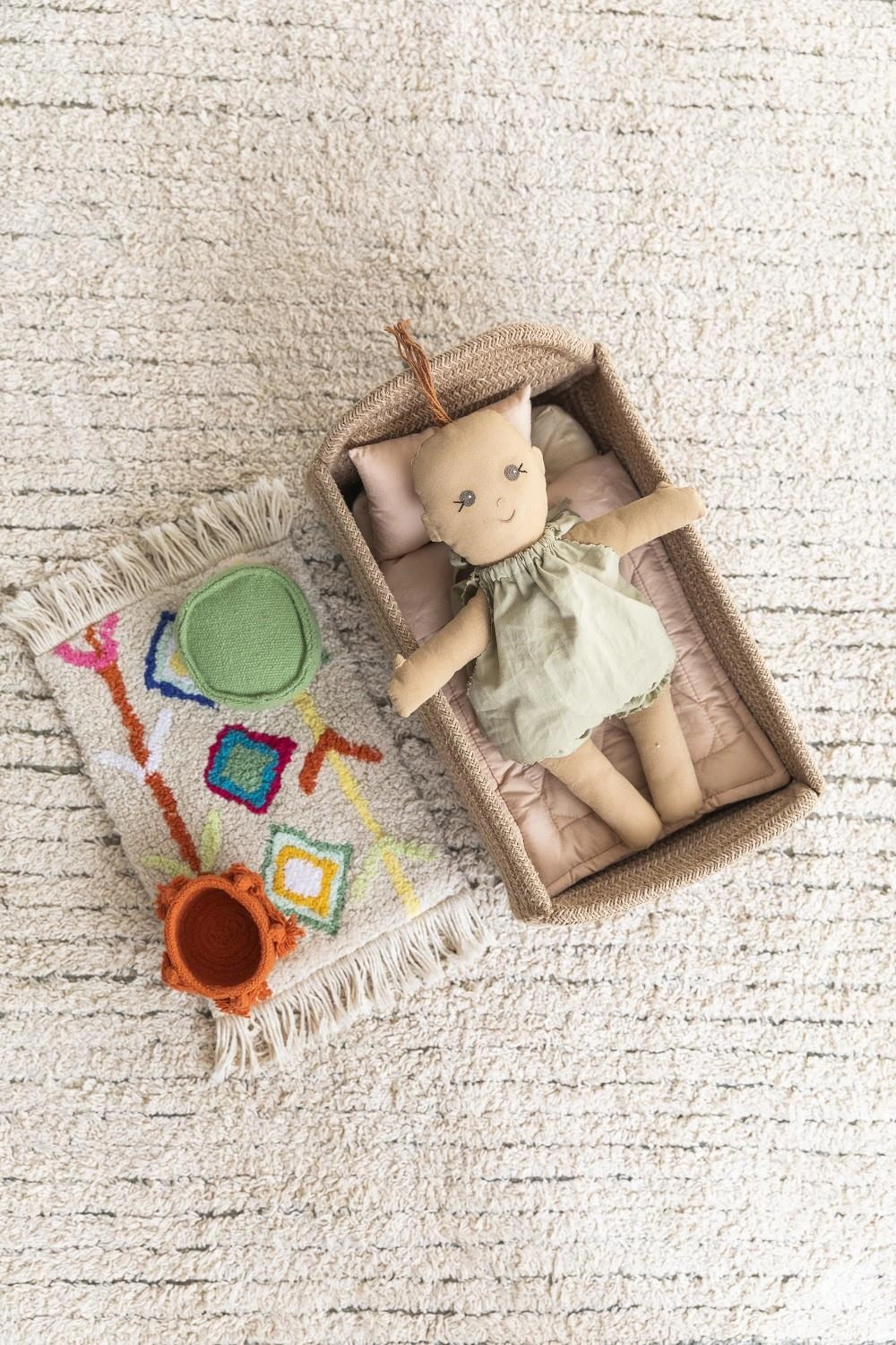 Jestem wyjątkową lalką tekstylną, stworzoną z sercem i pasją. Moje wyposażenie to mini łóżeczko z wygodnym materacem, urocza poduszka i przytulna pościel. Dodatkowo, otrzymasz zestaw dekoracyjny z miniaturami naszych najlepiej sprzedających się projektów, takimi jak dywanik Kaarol, kosz z frędzlami i stylowa pufa Chill, które przekształcą moje małe królestwo w raj dla lalki.