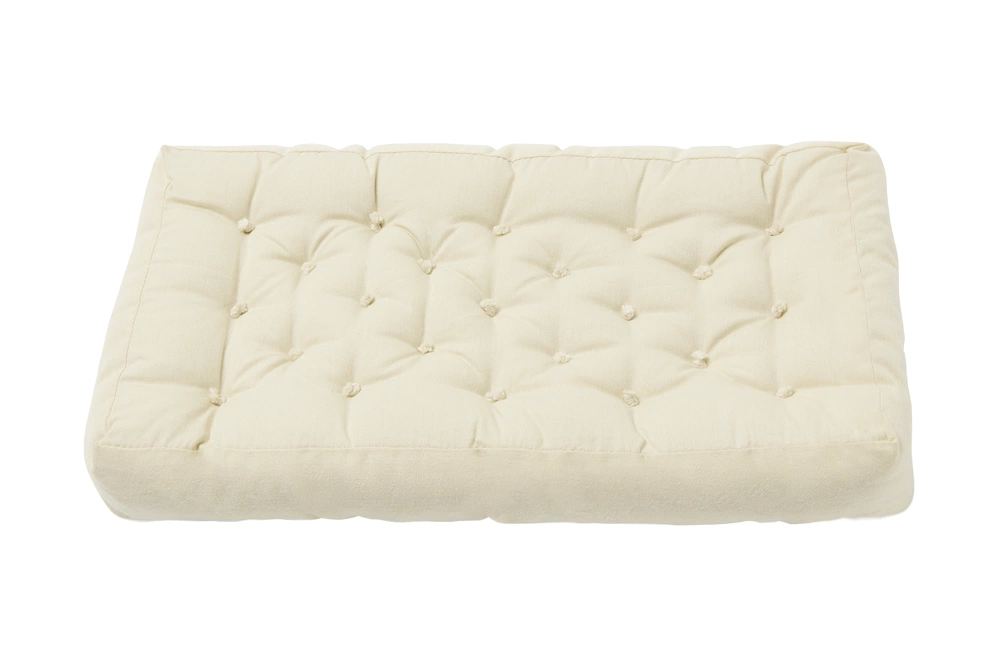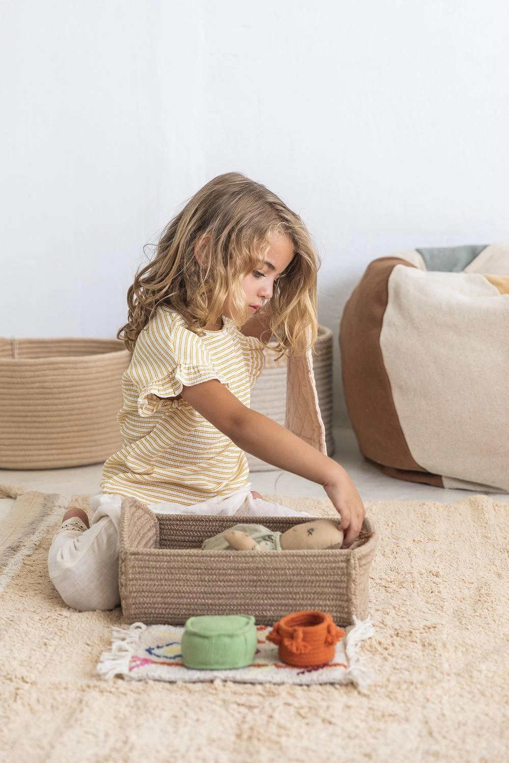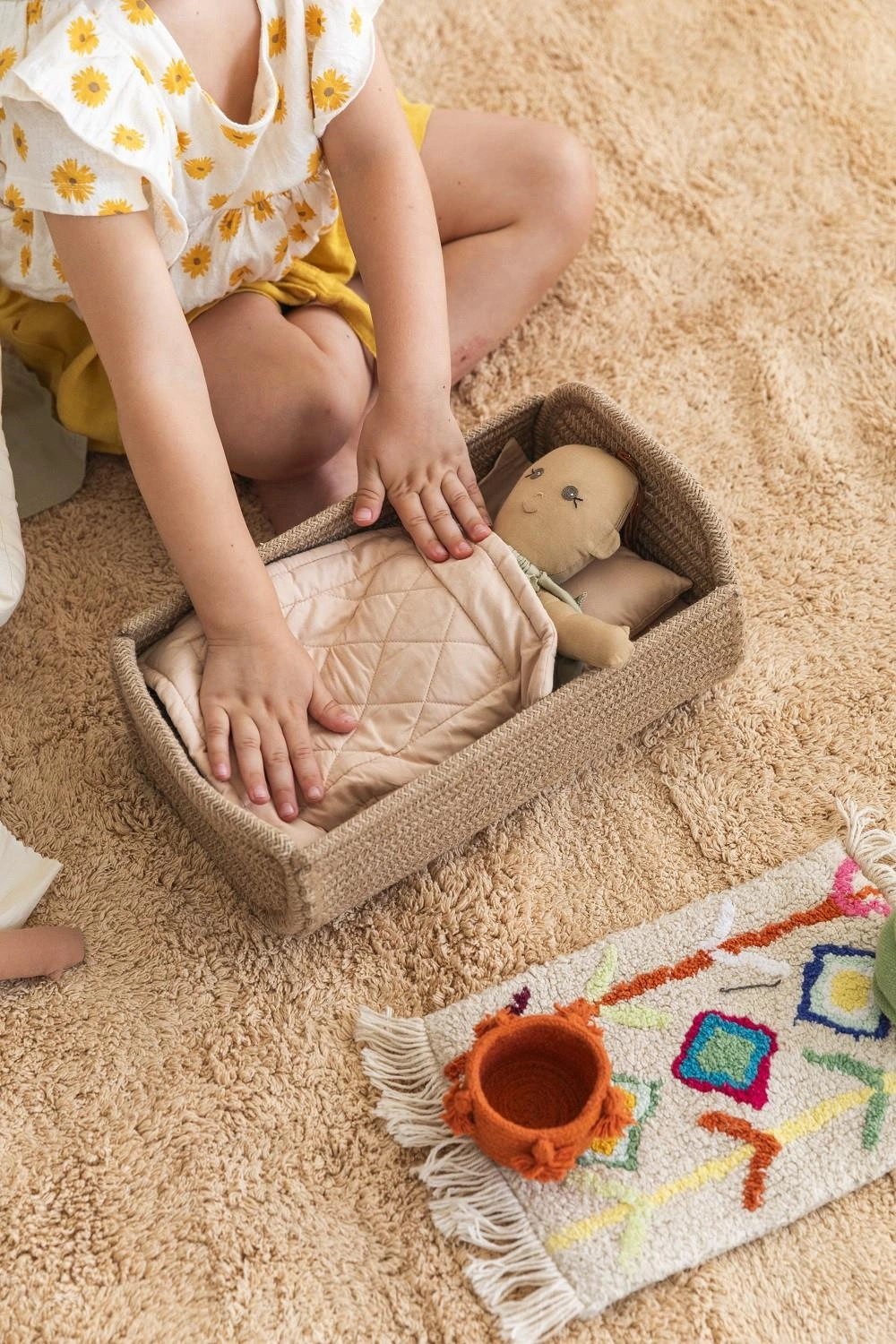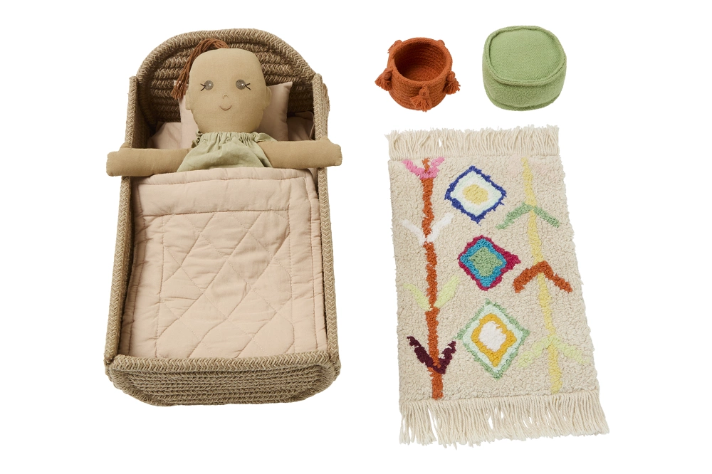 A co najlepsze? Moja istota powstała z wykorzystaniem resztek tkanin pochodzących z naszej własnej produkcji, co oznacza, że nie generujemy żadnych odpadów. Co więcej, moja pościel została wykonana z certyfikowanej bawełny GOTS, a łóżeczko z plecionych nitek bawełnianych, które zostały zmieszane z przetworzonymi włóknami PET pochodzącymi z butelek.