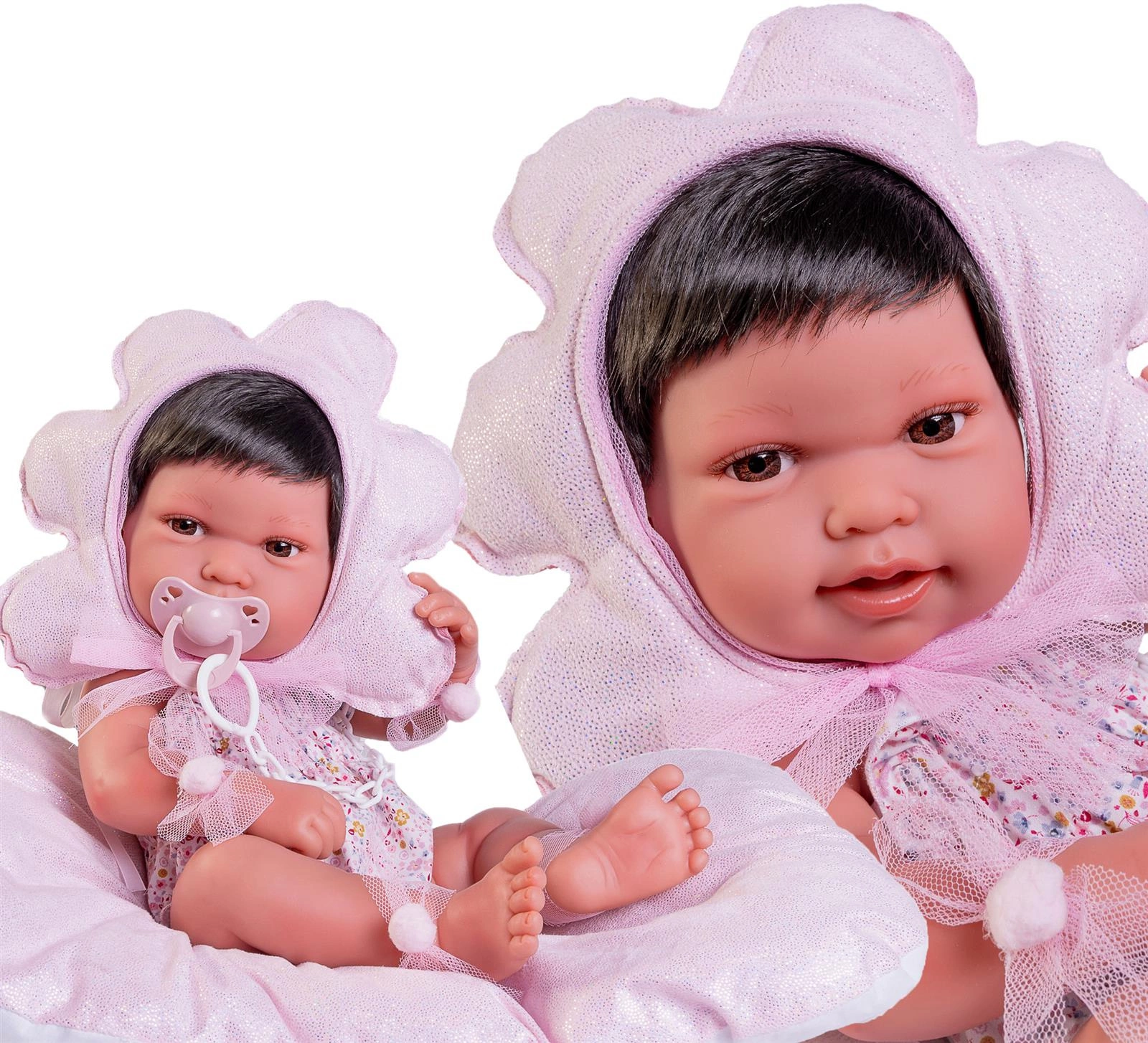 Lalka hiszpańska 50397 to urocza nowość 2023 z kolekcji marki Antonio Juan. Dziewczynka o imieniu Pipa to zabawny noworodek, który przebrał się za kwiatka. Model ten również uzupełnia kolekcję winylowych lalek do kąpieli. Proponowany egzemplarz poszerzy bogaty asortyment bobasów marki Antonio Juan. Bobas ma krótkie, czarne włosy, które można czesać. Pipa jest jedną z większych lal i ma 42 cm wysokości. Ma ręcznie malowane brązowe oczka wyglądające niczym jak u dziecka. Oprawę jej oczu podkreślą długie paski rzęs oraz delikatnie narysowane włoski tworzące łuk brwiowy. Tak odwzorowana laleczka stanie się najlepszą przyjaciółką naszych dzieci.