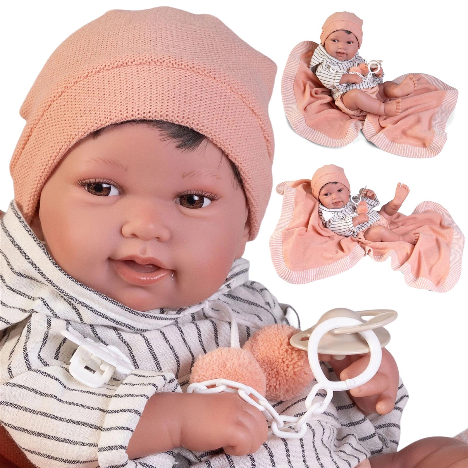 W każdej kolekcji bobasów powinien znaleźć się chłopiec. 42 -centymetrowa, unikalna winylowa lalka hiszpańska 50413 to wyjątkowa wersja bestsellerowego modelu 50035. Przypominający żywego niemowlaka Pipo posiada pozostałość pępowiny i ma zaznaczoną płeć. Urzeka piękna, pogodna, realistycznie wyglądająca twarzyczka. Bobas renomowanej marki Antonio Juan wyróżnia się dopracowanymi szczegółami, takimi jak: długie rzęsy, ręcznie malowane brwi, usta i paznokcie, imitacja śliny w kąciku ust, czy też fałdki i krótkie brązowe włoski.