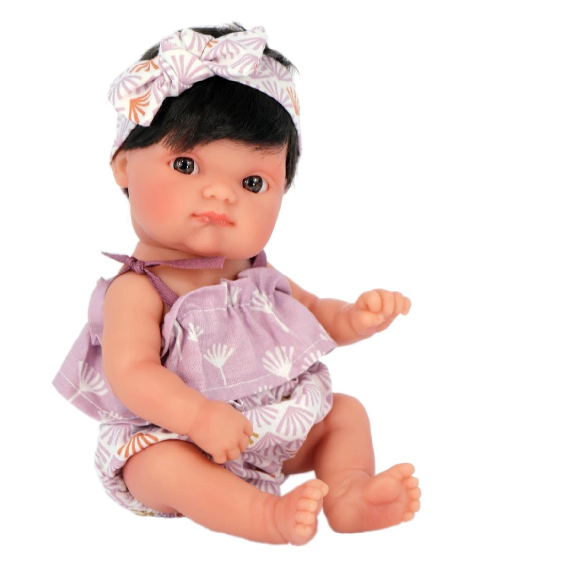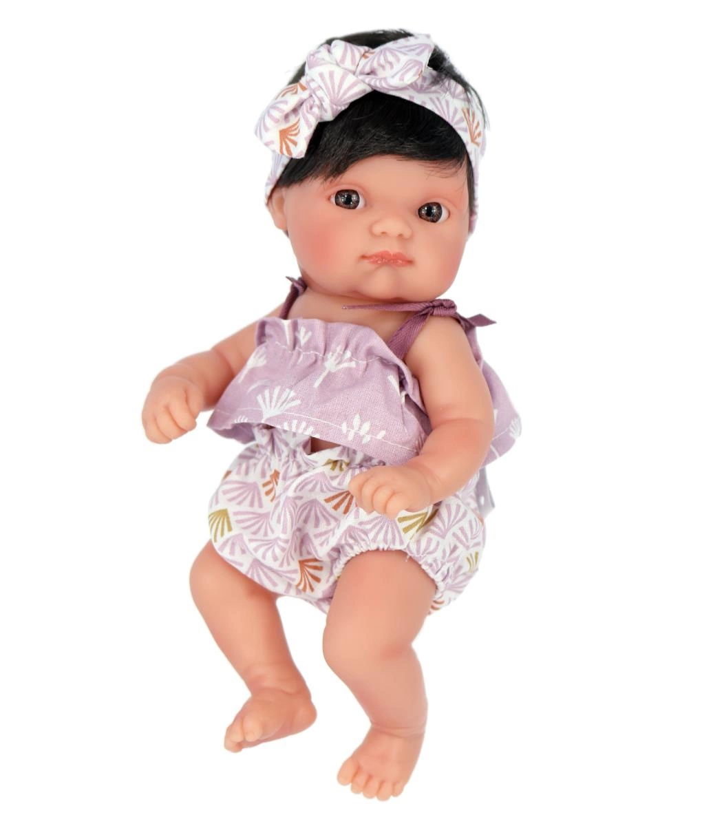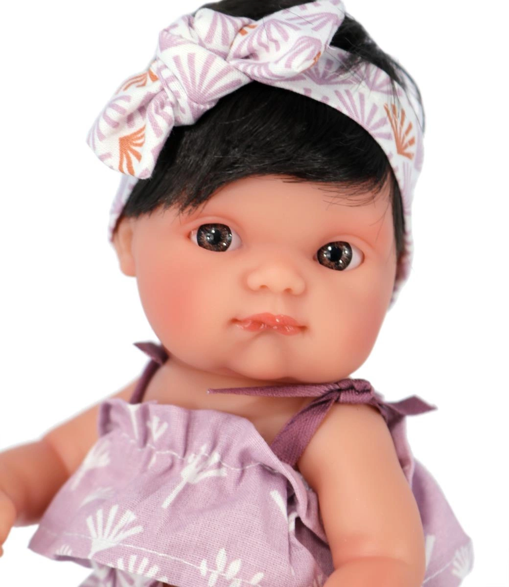 Noworodek z włosami od firmy Antonio Juan to niewielka laleczka o wysokości 21 cm. Mufly ma krótkie czarne włoski z grzywką. Uroku dodają jej duże, brązowe oczka, błyszczące usta i zaróżowione policzki. Oczy zostały namalowane ręcznie i nie zamykają się. Lalka w najmniejszym detalu została odwzorowana jak prawdziwa dziewczynka. Dodatkowo Mufly ma zaznaczoną płeć. Zabawka ze względów bezpieczeństwa przeznaczona jest do zabawy dla dzieci od 2 roku życia.
