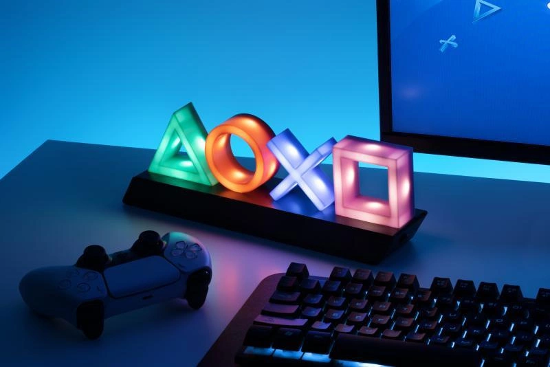 Idealna dla graczy lampka PlayStation Icons Light przedstawia klasyczne symbole przycisków kontrolera PlayStation na eleganckim czarnym cokole, stanowiąc idealny dodatek do każdej sypialni lub pokoju gier.