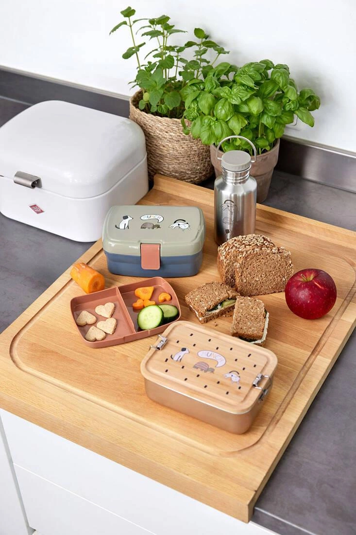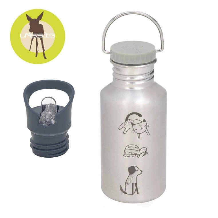 Solidny bidon ze stali nierdzewnej niemieckiej marki LASSIG przyda się nie tylko do szkoły, ale również podczas rodzinnych spacerów i wycieczek. Ma pojemność 500 ml, jest lekki, szczelny i bardzo wytrzymały. Doskonały do chłodnych, niegazowanych napojów. To idealne rozwiązanie na wszelkie wyjazdy oraz aktywności na dworze. Odkręcana pokrywka posiada silikonową uszczelkę i poręczny stalowy uchwyt. Do zestawu dołączona jest też druga grafitowa pokrywka z gwintem, wygodnym ustnikiem i rączką z tworzywa. Bidon jest łatwy w obsłudze i ma ergonomiczny kształt – z łatwością zmieści się do małego plecaka, torebki czy bocznej kieszonki. Ma srebrny kolor z uroczą grafitową grafiką domowych zwierzątek: kota, żółwia i psa. Stanowi część większej kolekcji Happy Prints. Możesz dobrać do niego inny produkt w tej samej gamie kolorystycznej i z tym samym motywem.