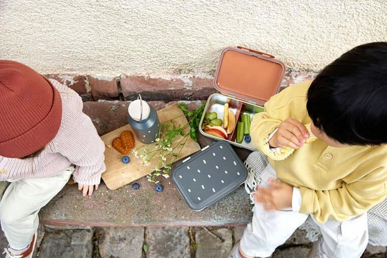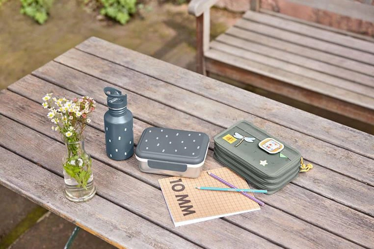 Solidny bidon ze stali nierdzewnej niemieckiej marki LASSIG przyda się nie tylko do szkoły, ale również podczas rodzinnych spacerów i wycieczek. Ma pojemność 500 ml, jest lekki, szczelny i bardzo wytrzymały. Doskonały do chłodnych, niegazowanych napojów. To idealne rozwiązanie na wszelkie wyjazdy oraz aktywności na dworze. Odkręcana pokrywka posiada silikonową uszczelkę i poręczny stalowy uchwyt. Do zestawu dołączona jest też druga pokrywka z gwintem, wygodnym ustnikiem i rączką z tworzywa. Bidon jest łatwy w obsłudze i ma ergonomiczny kształt – z łatwością zmieści się do małego plecaka, torebki czy bocznej kieszonki. Ma granatowy kolor w urocze białe ciapki.
