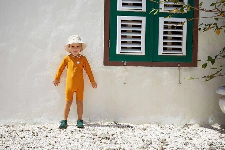 Kolekcja Splash & Fun to seria produktów, przeznaczonych do kąpieli i spędzania dnia na plaży czy basenie. Wszystkie elementy garderoby – pieluszki, szorty, kombinezony czy nakrycia głowy – są szybkoschnące i doskonale chronią delikatną skórę dziecka przed promieniowaniem UV. Dodatkowo są komfortowe w noszeniu i użytkowaniu oraz wyróżniają się niebanalną kolorystyką.
