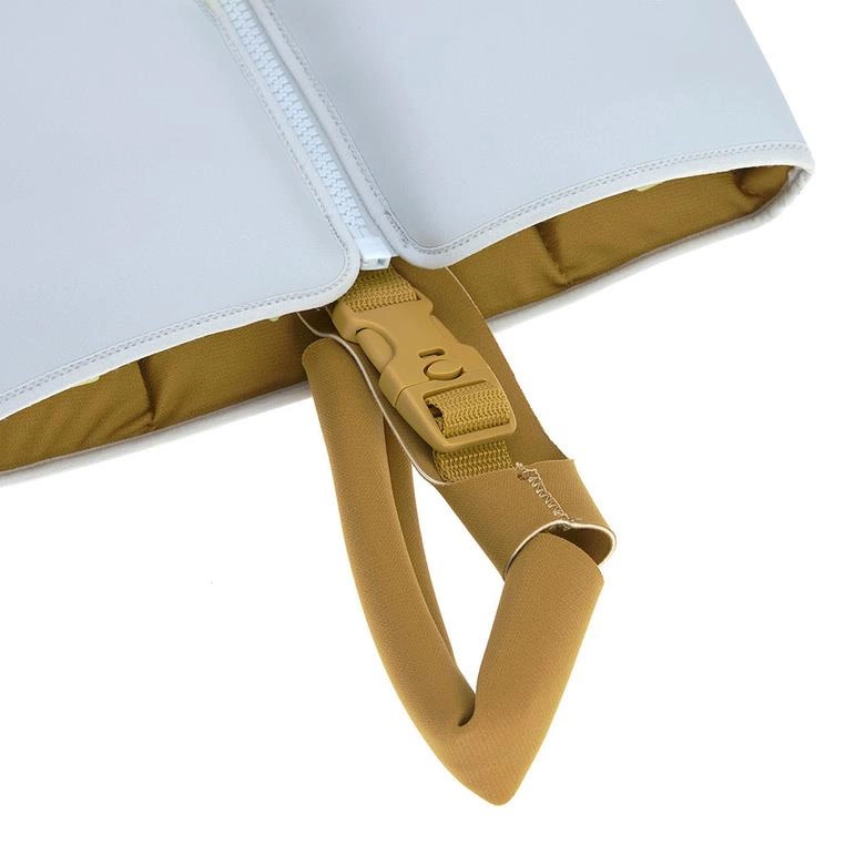 Skład: na zewnątrz 50% neopren, 28% poliester z recyklingu, 16% elastan, wewnątrz 100% poliester, wypełnienie 100% polietylen