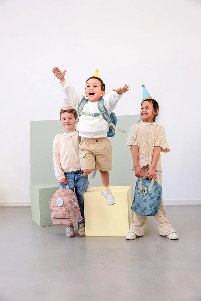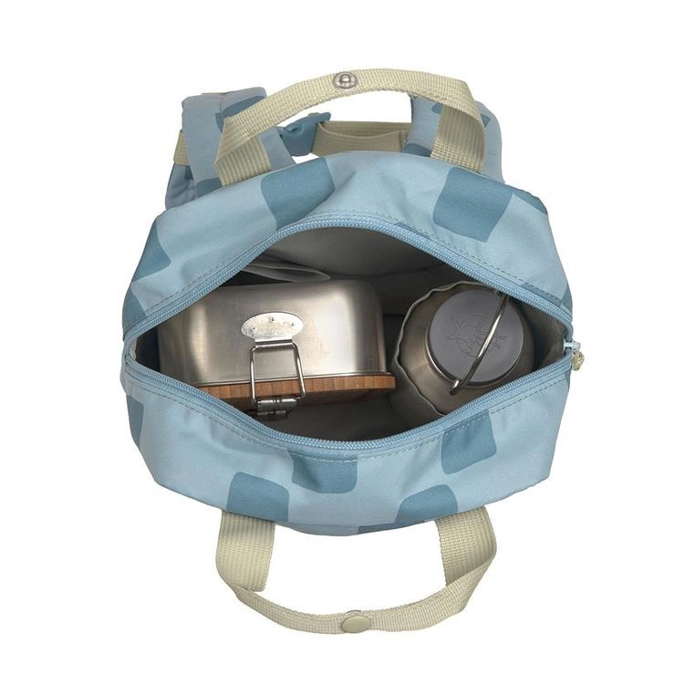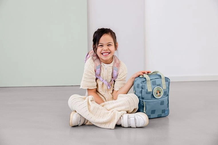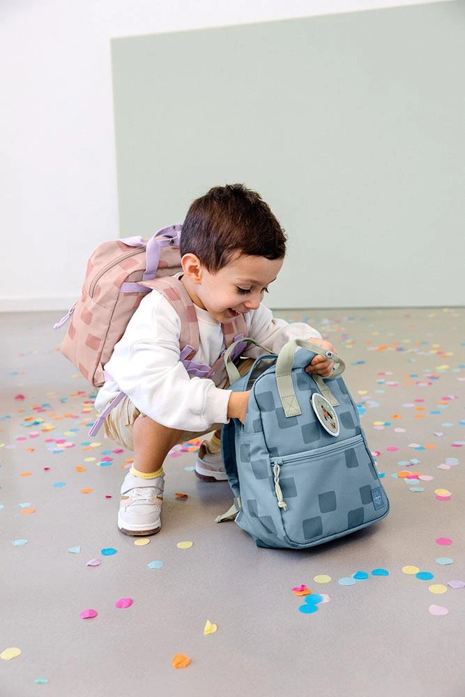 Funkcjonalny, uroczy kwadratowy plecak niemieckiej marki LASSIG. Sprawdzi się do przedszkola, jak i podczas wycieczek. Jest lekki, wygodny, o optymalnej pojemności 7 l. Zwraca uwagę niebanalną kolorystyką – jest niebieski w kwadraciki z jasnoszarymi detalami.