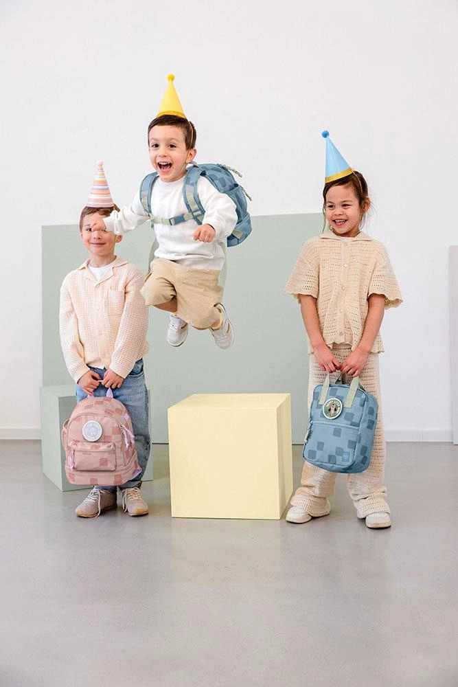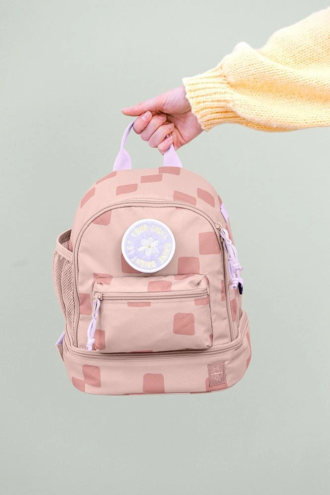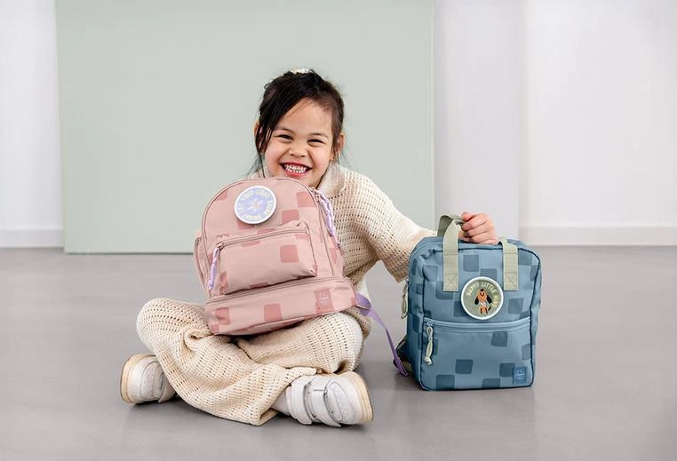 Funkcjonalny, uroczy plecak niemieckiej marki LASSIG. Sprawdzi się zarówno do przedszkola, jak i podczas wycieczek. Jest lekki, wygodny, o optymalnej pojemności 6,5l. Zwraca uwagę niebanalną kolorystyką – jest pudrowo-różowy w kwadraciki z liliowymi detalami.