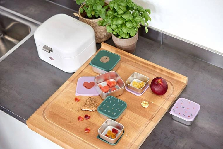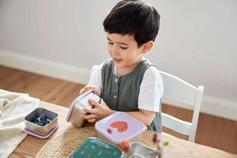 Lassig Pojemnik na przekąski snackbox ze stali nierdzewnej 3 szt. Happy Rascals Heart lavender