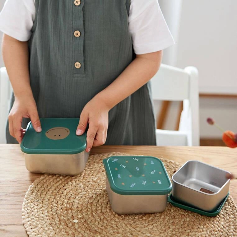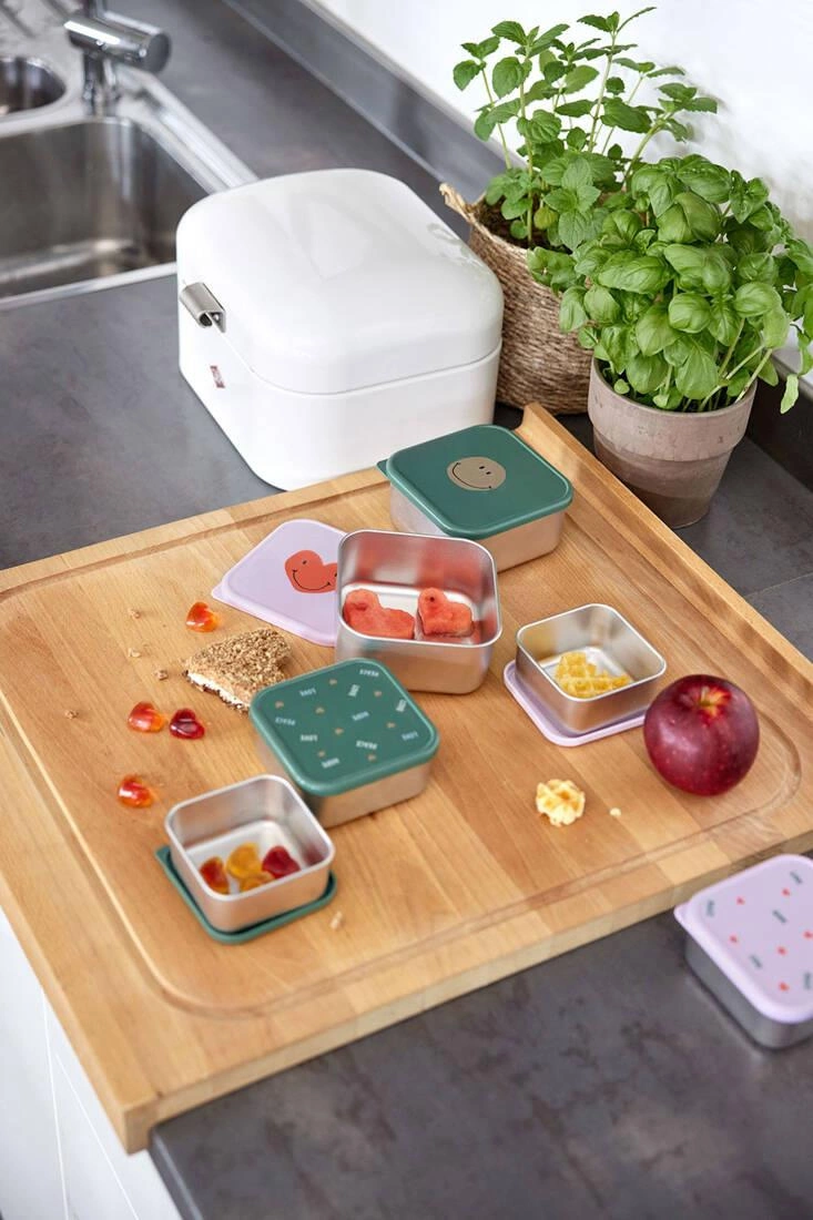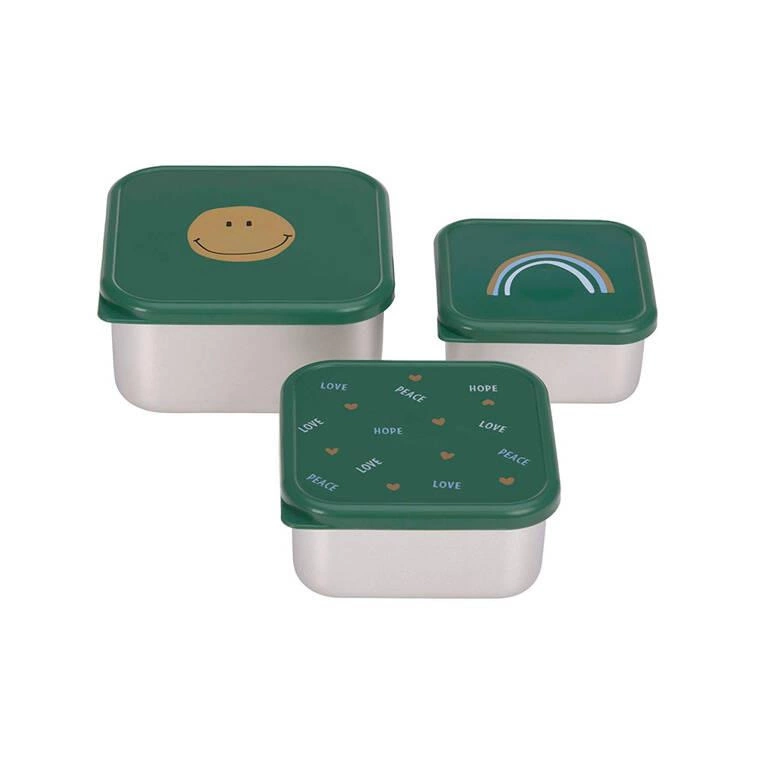 Lassig Pojemnik na przekąski snackbox ze stali nierdzewnej 3 szt. Happy Rascals Smile green