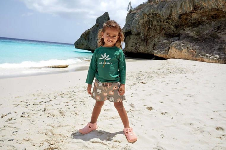 Kolekcja Splash & Fun to seria produktów, przeznaczonych do kąpieli i spędzania dnia na plaży czy basenie. Wszystkie elementy garderoby – pieluszki, szorty, kombinezony czy nakrycia głowy – są szybkoschnące i doskonale chronią delikatną skórę dziecka przed promieniowaniem UV. Dodatkowo są komfortowe w noszeniu i użytkowaniu oraz wyróżniają się niebanalną kolorystyką.