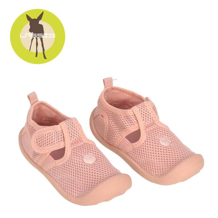 Praktyczne i komfortowe sandałki do wody z kolekcji Splash & Fun niemieckiej marki LASSIG. Wykonane są z miękkiej, przyjemnej do noszenia, szybkoschnącej perforowanej tkaniny w kolorze jasnoróżowym. Oddychające, zapinane na rzep, z wyjmowaną, profilowaną wkładką i rozbudowaną na nosek, giętką, antypoślizgową gumową podeszwą, zapewniają wygodę i bezpieczeństwo, zarówno w wodzie, jak i poza nią.