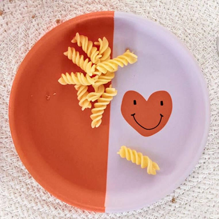 Uroczy okrągły talerzyk silikonowy niemieckiej marki LASSIG. Stworzony z najbezpieczniejszego silikonu, giętki, praktyczny, hipoalergiczny i wyjątkowo odporny na zniszczenia (nie rysuje się i nie przebarwia). Dobrze przywiera do każdej gładkiej powierzchni, na której go położysz. Jest lekki i stabilny. Ma estetyczny i atrakcyjny dla malucha wygląd: w połowie czerwony, w drugiej – jasno lawendowy z czerwoną grafiką – uśmiechniętym serduszkiem. Wyższe brzegi naczynia ułatwiają nabieranie pokarmów, co wspiera rozwój samodzielności dziecka. Odpowiedni już od 6. miesiąca życia. Stanowi część większej kolekcji Happy Rascals. Możesz dobrać do niego inny produkt w tej samej gamie kolorystycznej lub z tym samym motywem.