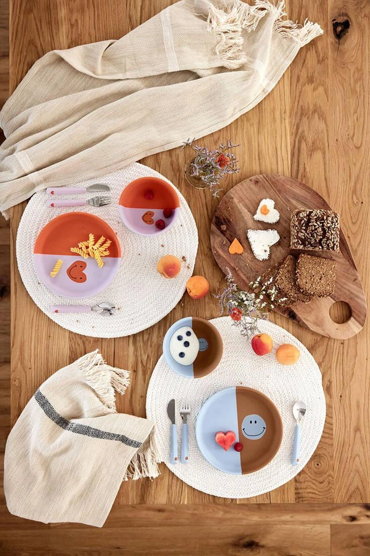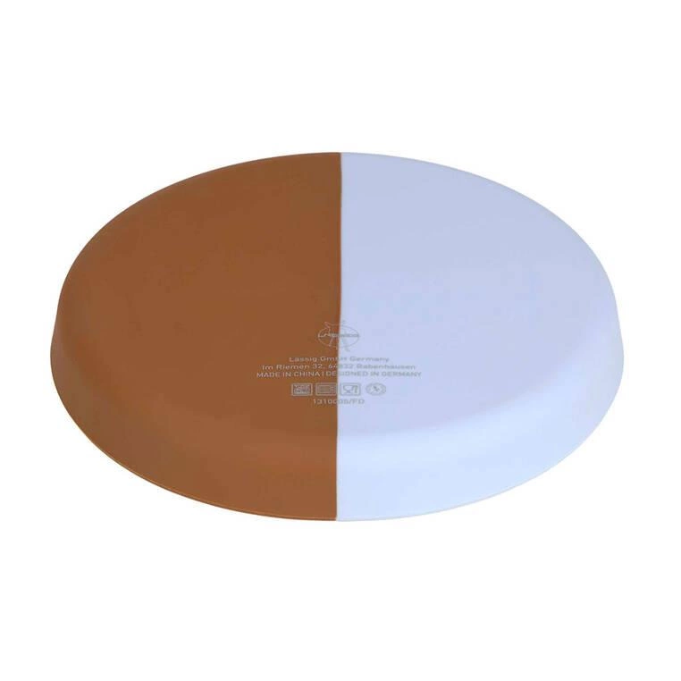 Uroczy okrągły talerzyk silikonowy niemieckiej marki LASSIG. Stworzony z najbezpieczniejszego silikonu, giętki, praktyczny, hipoalergiczny i wyjątkowo odporny na zniszczenia (nie rysuje się i nie przebarwia). Dobrze przywiera do każdej gładkiej powierzchni, na której go położysz. Jest lekki i stabilny. Ma estetyczny i atrakcyjny dla malucha wygląd: w połowie jasnoniebieski, w drugiej – karmelowy z jasnoniebieską grafiką – uśmiechniętą buźką. Wyższe brzegi naczynia ułatwiają nabieranie pokarmów, co wspiera rozwój samodzielności dziecka. Odpowiedni już od 6. miesiąca życia. Stanowi część większej kolekcji Happy Rascals. Możesz dobrać do niego inny produkt w tej samej gamie kolorystycznej lub z tym samym motywem.