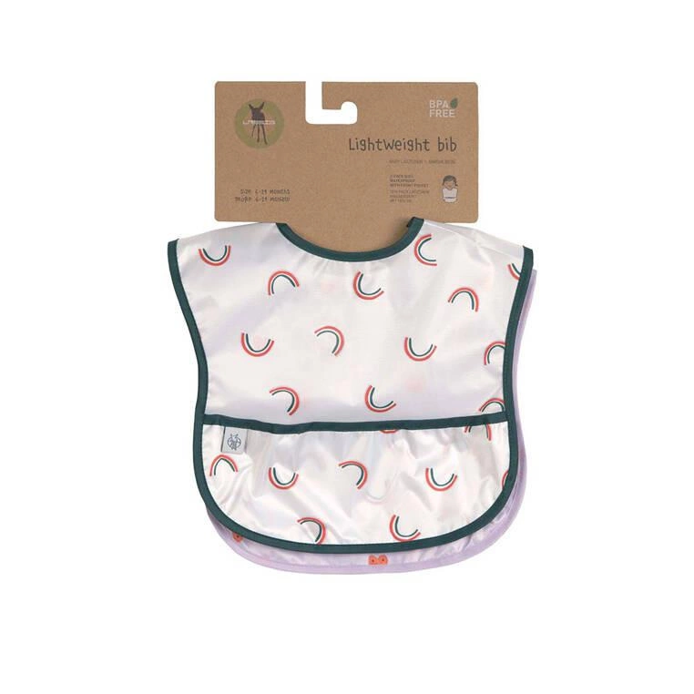 Zestaw dwóch praktycznych, łatwo zmywalnych śliniaków niemieckiej marki LASSIG. Są duże, wykonane z wodoodpornego tworzywa – jeden jasno lawendowy w czerwone uśmiechnięte serduszka, drugi jasny z ciemnozielonym obszyciem w multiprint z tęczą. Miękka taśma i zapięcie na rzep zapewniają komfort użytkowania. Śliniaki przeznaczone są dla dzieci od 6. do 24. miesiąca życia. Sprawdzą się przy płynnych czy szczególnie brudzących posiłkach, przy karmieniu, jak i pierwszych próbach samodzielnego jedzenia. Na dole mają kieszonkę, gdzie mogą się zbierać resztki pokarmu, które nie trafiły do buzi. Dzięki temu masz pewność, że nie zaplamią ubrania maluszka. Stanowią część większej kolekcji Happy Rascals. Możesz dobrać do nich inny produkt w tej samej gamie kolorystycznej.