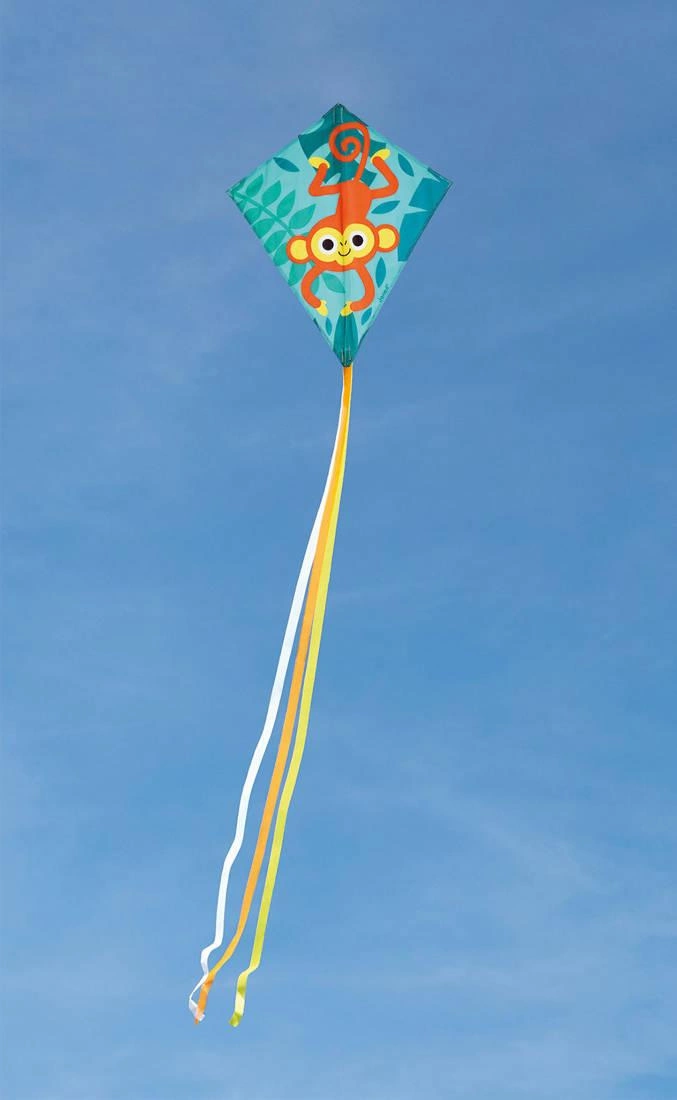 Latawiec Małpka z serii Tropik francuskiej marki JANOD to doskonała zabawka dla dzieci i reszty rodziny. Wykonany z solidnego włókna szklanego, ma tradycyjny czworokątny kształt, kolorowe paski, które powiewają na wietrze, a na zielono-turkusowym tle w motywy roślinne grafikę zabawnej małpki. Puszczanie latawca to świetna zabawa zręcznościowa, zachęcająca do aktywności plenerowych, sprawdza się np. na plaży, podczas spacerów czy pikników.