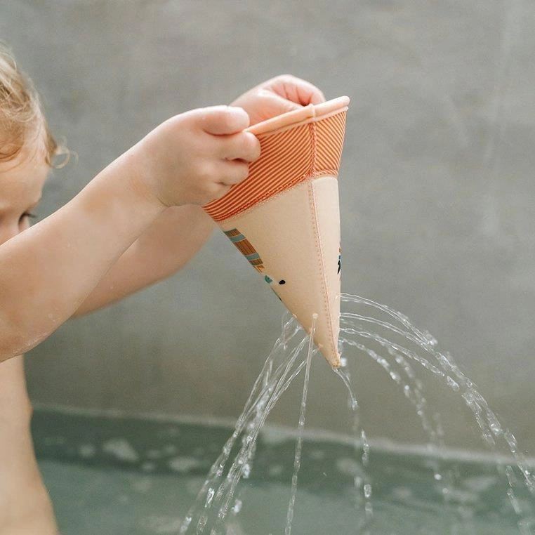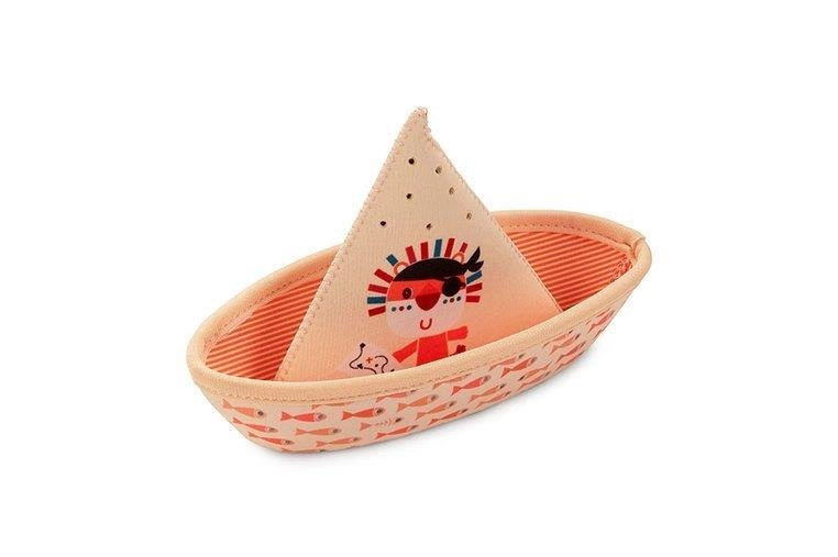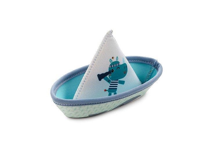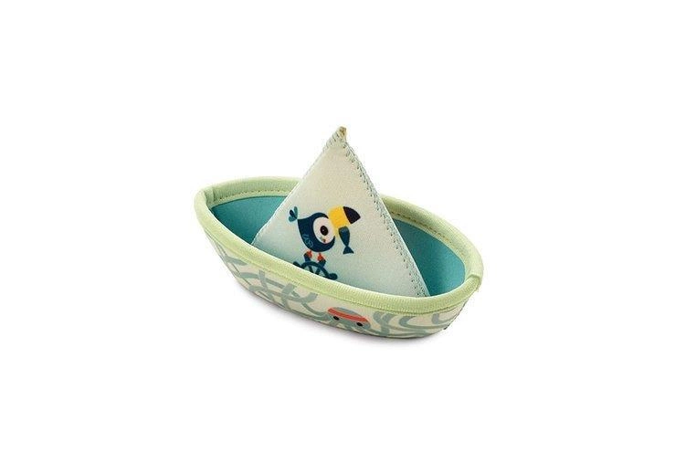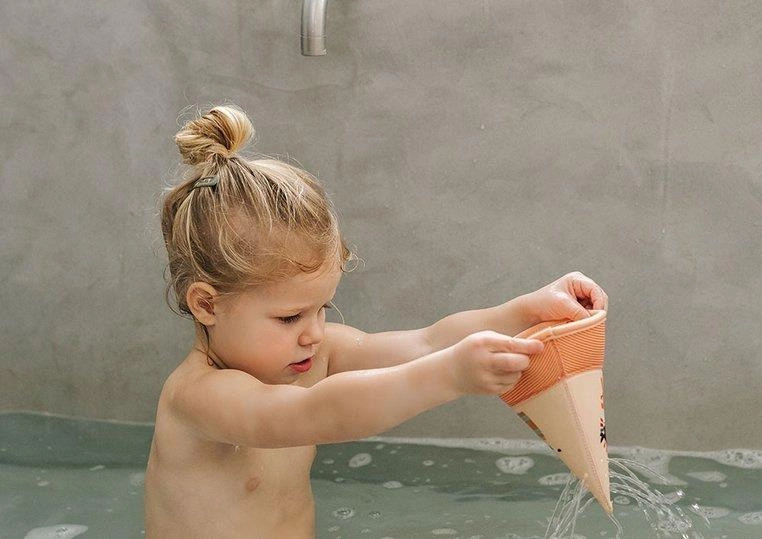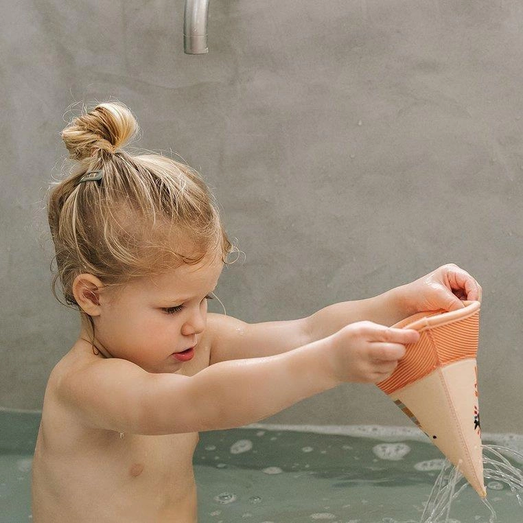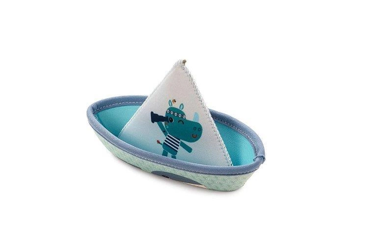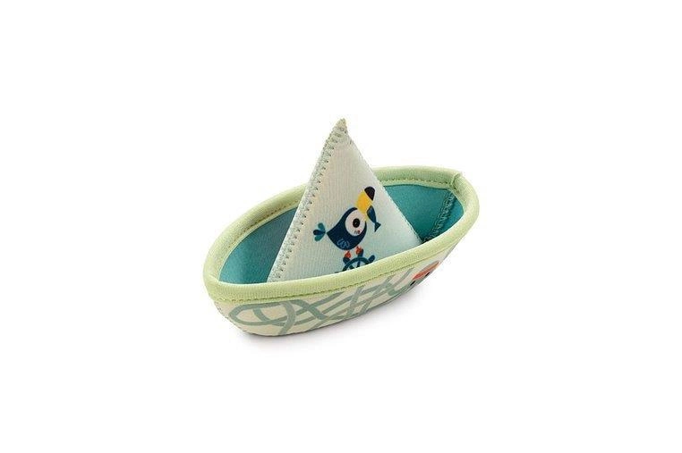 Zestaw 3 łódeczek do kąpieli z kolekcji Dżungla belgijskiej marki Lilliputiens, wykonanych z miękkiego, łatwego do czyszczenia i szybkoschnącego neoprenu. Łódeczki są dwustronne, mogą być obracane wedle woli maluszka. Z jednej strony zdobią je postacie charakterystyczne dla kolekcji Dżungla – Lew Jack, Nosorożec Marius i Tukan Pablo, a z drugiej – słodkie ptaszki. Mają klasyczny kształt „łódek z papieru”, są lekkie, giętkie i unoszą się na wodzie. Dwie z nich posiadają otwór na czubku „żagla”, dzięki czemu po obróceniu do góry dnem i napełnieniu wodą, tryskają jak fontanna. Można je też rozłożyć do kształtu rożka. Zabawka jest perfekcyjnie wykończona, z dbałością o każdy szczegół i w pełni bezpieczna dla dziecka. Rozwija sprawność motoryczną i koordynację ręka-oko.