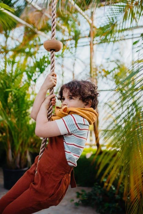 Aktywne zabawy na świeżym powietrzu to coś czego nie maże zabraknąć w życiu żadnego malucha. Każde zdobyte doświadczenie oraz frajda z niego płynąca pozwalają zdrowo się rozwijać i osiągać nowe szczyty. Lina do wspinaczki dla dzieci od Small foot wyposażona w drewniane stopnie to prosty dodatek, który z pewnością znajdzie swoje miejsce w ogrodzie lub pokoju dając maluchom zupełnie nowe możliwości. Wykonane z litego drewna pierścienie zapewniają stabilne źródło oparcia w trakcie podciągania, a udźwig do 100 kg pozwala na użytkowanie przez maluchy w każdym wieku.