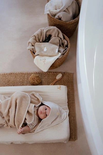 Bawełniany ręcznik z kapturem 75x75 cm Forest Wonders od Little Dutch. Ręcznik otuli maluszka ciepłem i miękkością po kąpieli. Wykonany jest w 100% z bawełny organicznej frotte, która jest bardzo przyjemna i delikatna dla skóry dziecka. Wyjątkowo miękki, duży kaptur z uroczym wzorem Forest Wonders utrzymuje główkę malucha w cieple.