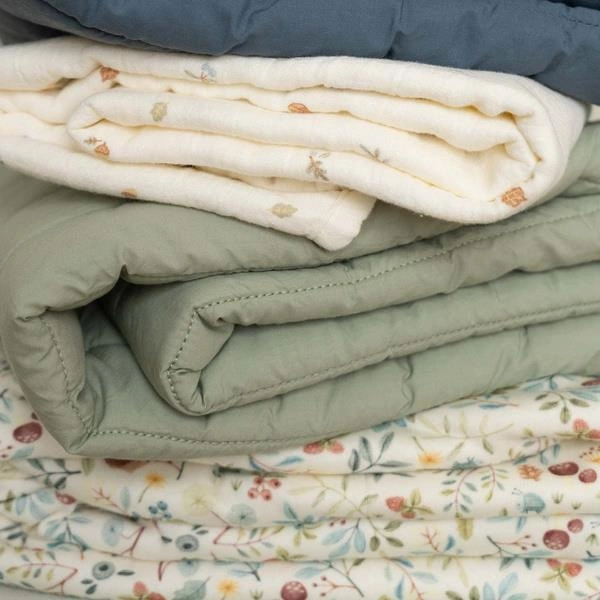 Letni kocyk muślinowy 70x100 cm Forest Treasures od Little Dutch. Piękny 4-warstwowy kocyk, który zapewni dziecku cudowną miękkość, ciepło i przytulność podczas snu. Wykonany z wstępnie pranej muślinowej bawełny organicznej, jest oddychający, dobrze wchłania wilgoć i otula maluszka miękkością - idealnie nadaje się na sezon letni. Lekki miękki kocyk przyda się także do położenia na nim malucha w domu lub w podróży. Delikatny wzór Forest Treasures w grzybki, liście i szyszki dodaje mu uroku i umili dziecięce sny. Kocyk pięknie łączy się z innymi produktami z kolekcji Forest Friends.