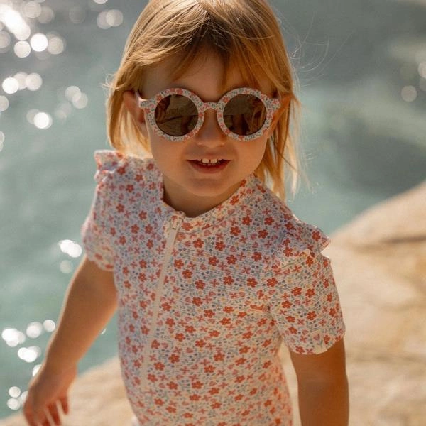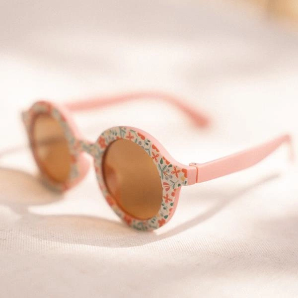 Okulary okrągłe Flowers od Little Dutch. Okrągłe okulary przeciwsłoneczne z kwiatowym nadrukiem są stworzone dla słonecznych dni pełnych zabawy. Twoje dziecko będzie wyglądać stylowo, a jego oczy otrzymają odpowiednią ochronę. Okulary mają filtr UV400. Sprawdzą się na spacerze, na rowerze czy hulajnodze oraz podczas zabawy na plaży. Stanowią świetne uzupełnienie do pozostałych akcesoriów z letniej kolekcji Little Dutch.