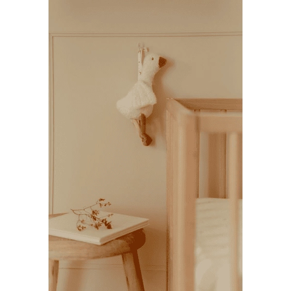 Pozytywka gąska z kolekcji Goose & Bunny od Little Dutch. Ta uroczy lisek pomoże maluszkowi się wyciszyć, zrelaksować, a w efekcie łatwiej zasnąć. Wystarczy delikatnie pociągnąć w dół za drewniane kółko, a pozytywka zacznie grać przyjemną kołysankę. Można łatwo przymocować ją do łóżeczka lub fotelika za pomocą zawieszki ze sznurka. Stanowi piękną dekorację dziecięcego pokoju i będzie też doskonałym pomysłem na prezent na baby shower. Pozytywka jest świetnym uzupełnieniem pozostałych produktów z kolekcji Forest Friends.