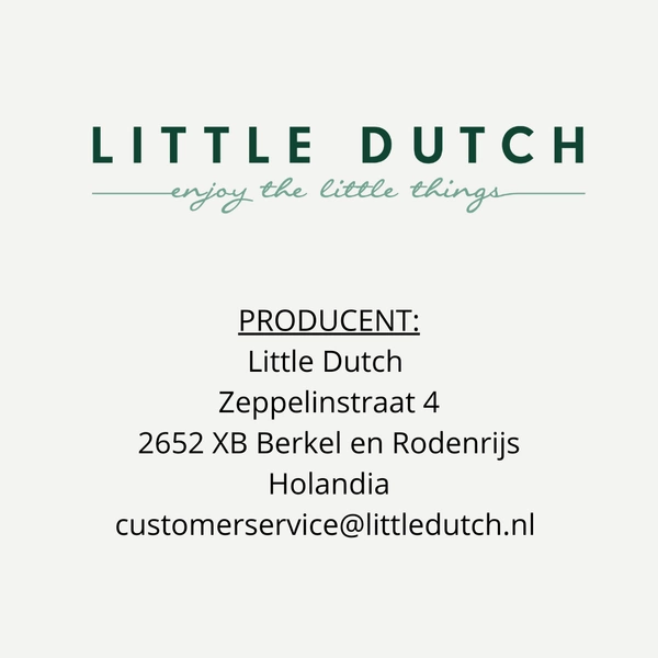 Little Dutch to holenderska firma rodzinna, prowadzona przez małżeństwo, które wkłada całe serce w tworzenie produktów dla najmłodszych. W ofercie marki znajdują się doskonałej jakości tekstylia, produkowane z bawełny organicznej z certyfikatem Oeko-tex, takie jak ręczniki, śpiworki do spania, otulacze, akcesoria do pokoików dziecięcych oraz zabawki sensoryczne dla niemowląt, jak również zabawki czy pojazdy wytwarzane z drewna. Produkty Little Dutch cechuje spokojna, pastelowa kolorystyka.