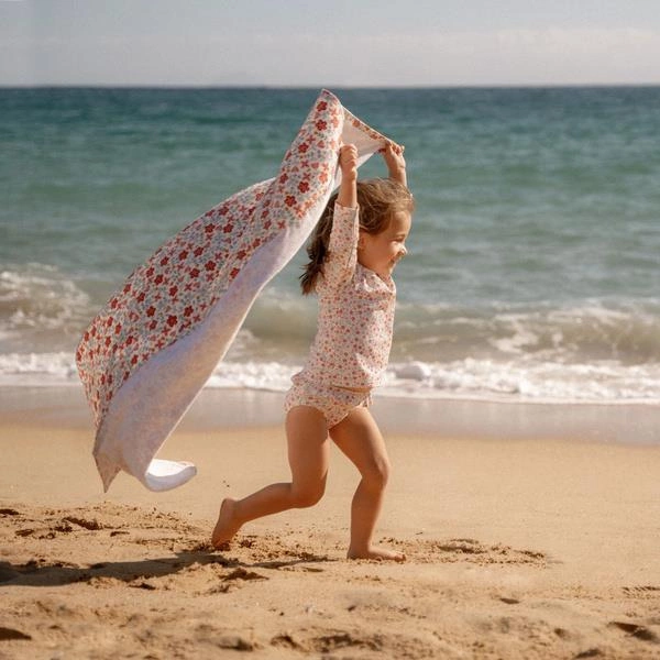 Ręcznik plażowy Ocean Sea Life Ocean Blue od Little Dutch. Ten miękki ręcznik z kwiatowym wzorem przyjemnie otuli po zabawach wodnych. Sprawdzi się podczas dnia na plaży, zabawie na basenie lub kąpieli w domu. Wykonany z 100% bawełny organicznej, dzięki czemu jest wyjątkowo delikatny i przyjemny dla skóry dzieci. Stanowi piękne uzupełnienie letniej kolekcji Little Dutch.