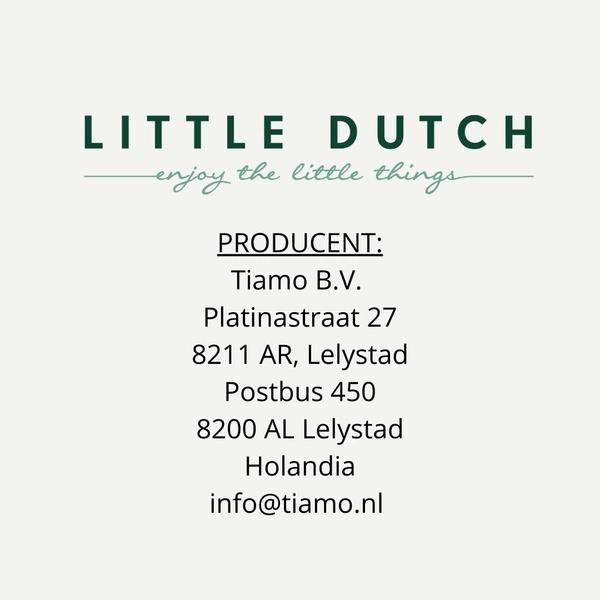Little Dutch to holenderska firma rodzinna, prowadzona przez małżeństwo, które wkłada całe serce w tworzenie produktów dla najmłodszych. W ofercie marki znajdują się doskonałej jakości tekstylia, produkowane z bawełny organicznej z certyfikatem Oeko-tex, takie jak ręczniki, śpiworki do spania, otulacze, akcesoria do pokoików dziecięcych oraz zabawki sensoryczne dla niemowląt, jak również zabawki czy pojazdy wytwarzane z drewna. Produkty Little Dutch cechuje spokojna, pastelowa kolorystyka.