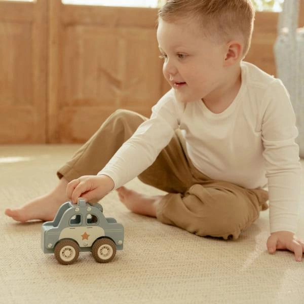 Zestaw aut składa się z karetki pogotowia, samochodu policyjnego i wozu strażackiego, wykonanych drewna i pięknie malowanych bezpiecznymi farbami na bazie wody. Dzięki tym specjalnym pojazdom dzieci uczą się współpracować poprzez odgrywanie ról i oferować pomoc innym. Zapakowany w ładne opakowanie z szybką, idealny na prezent. Łatwy i wygodny do chwytania przez małe rączki.