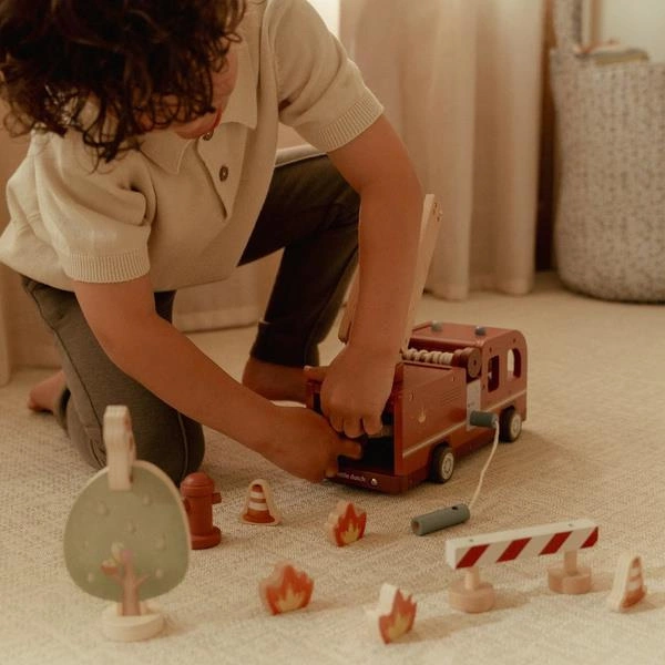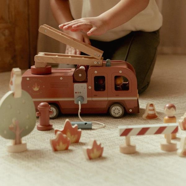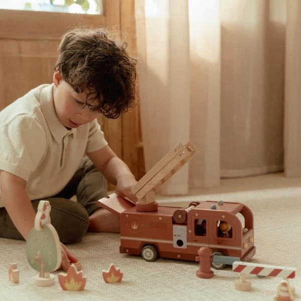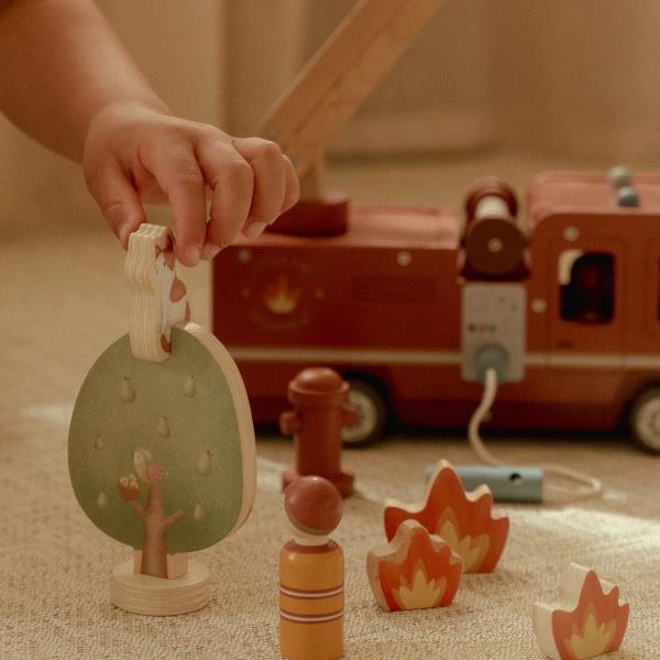 Zestaw aut składa się z karetki pogotowia, samochodu policyjnego i wozu strażackiego, wykonanych drewna i pięknie malowanych bezpiecznymi farbami na bazie wody. Dzięki tym specjalnym pojazdom dzieci uczą się współpracować poprzez odgrywanie ról i oferować pomoc innym. Zapakowany w ładne opakowanie z szybką, idealny na prezent. Łatwy i wygodny do chwytania przez małe rączki.