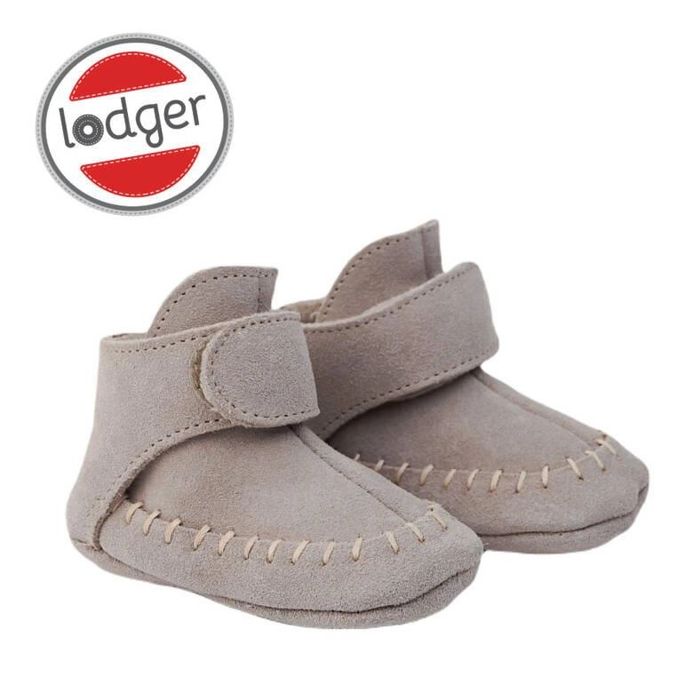 Skórzane buciki dla niemowląt holenderskiej marki Lodger. Wykonane w miękkiego zamszu, z    przyjemną polarową podszewką i giętką gumową antypoślizgową podeszwą nadają się idealnie do stawiania pierwszych kroków w domu i poza nim (również jesienią). Oddychająca skórka, wygodne zapięcie na rzep, stabilny spód i wyższy krój zapewniają swobodę ruchu, komfort i bezpieczeństwo. Butki są leciutkie i – między innymi dzięki widocznym, typowym dla mokasynek szwom – pięknie się prezentują. Do tego produktu możesz dobrać inny w zbliżonym kolorze. Produkt można czyścić ręcznie.