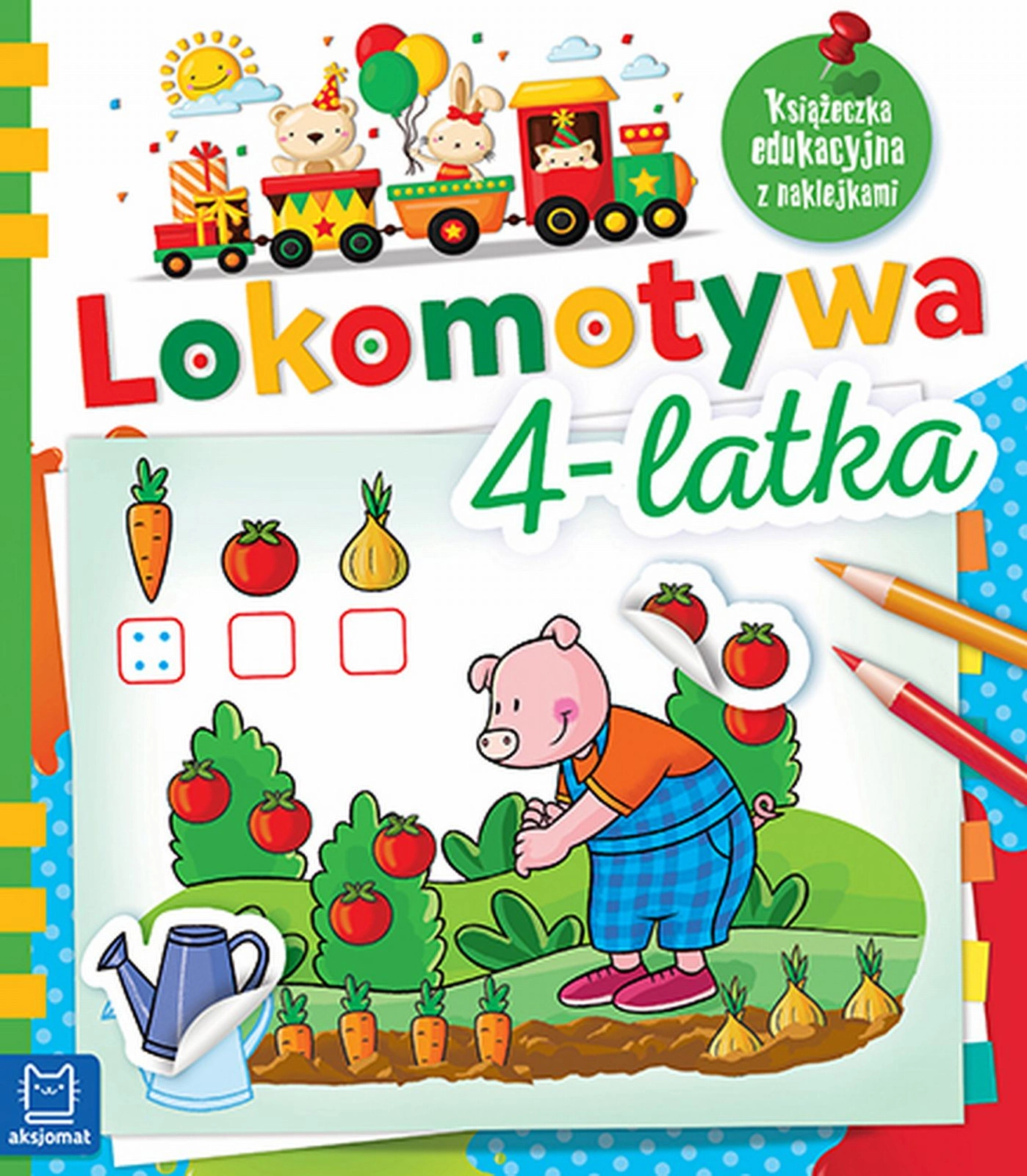 Z „Lokomotywą 4-latka” dzieci poznają zwierzęta domowe i wzbogacają wiedzę przyrodniczą, utrwalają nazwy kolorów, rozwijają umiejętność logicznego myślenia i spostrzegawczość, podejmują próby liczenia kilku elementów, słuchają prostych wierszyków, wzbogacają słownictwo, dorysowują proste kształty i kolorują.