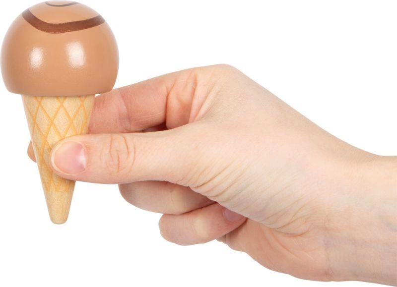Akcesoria do zabawy w lodziarnię z kompletu Fresh od Small Foot zostały zaprojektowane tak, aby maksymalnie ułatwić wyjmowanie gałek lodów z przegródek z lady oraz nakładanie ich do rożków. Dzięki wbudowanym magnesom gałki można układać na sobie!