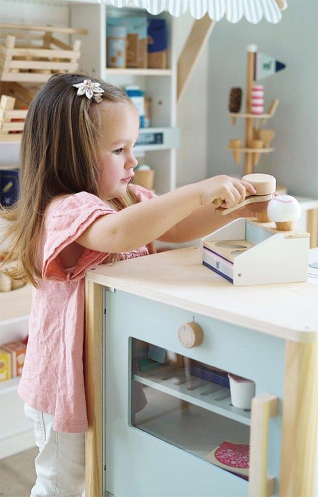 Drewniany zestaw lodziarnia dla dzieci Small Foot to wspaniały dodatek do kuchni lub sklepu dla małych amatorów zabawy poprzez imitację!