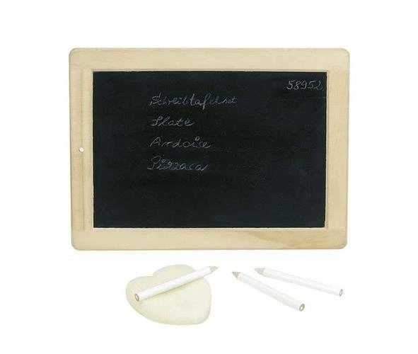 Mała tablica drewniana do pisania z kredkami i gąbką, goki