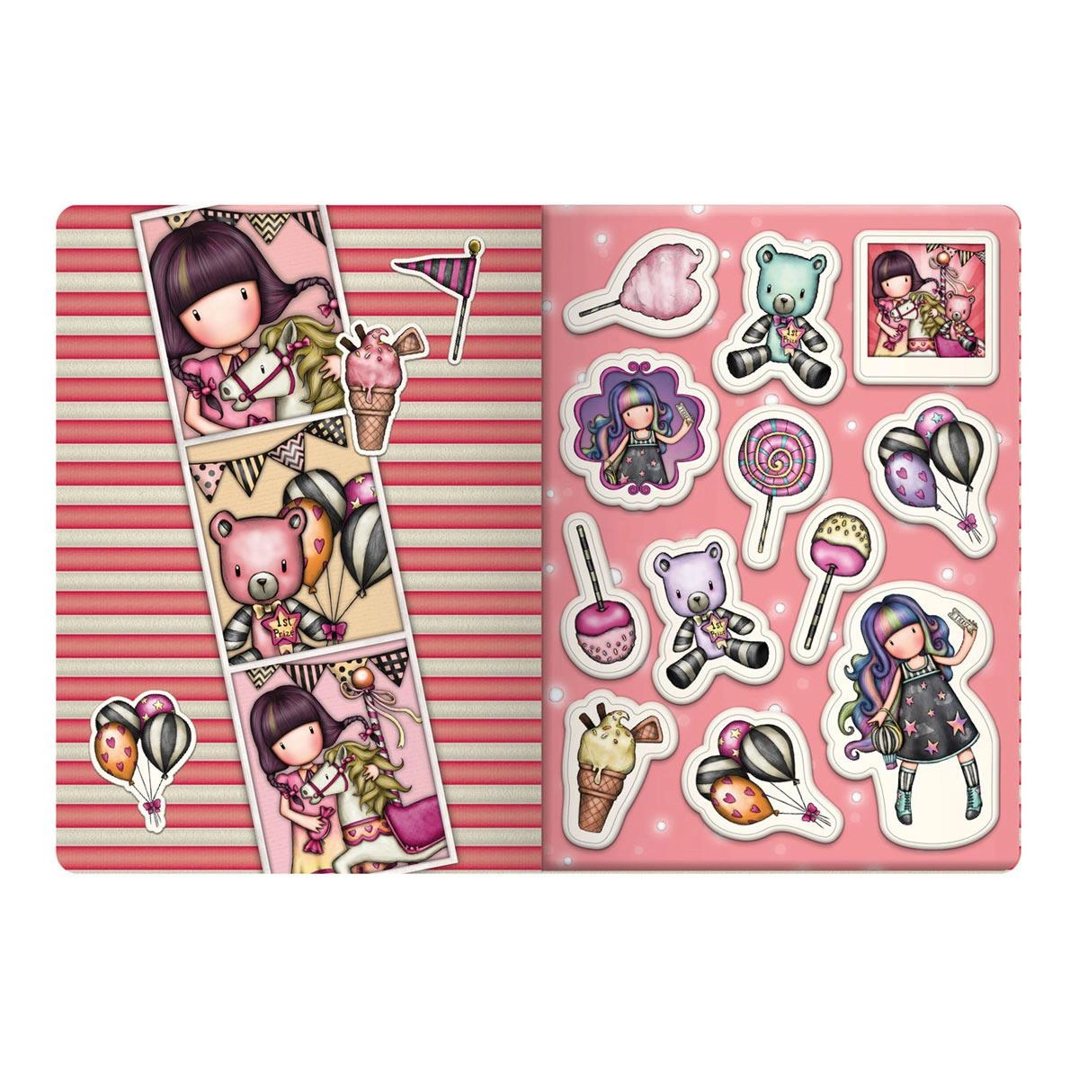 Zabawna kolekcja Fairground pełna plecaków, akcesoriów i artykułów papierniczych, która nawiązuje do tajemniczych przygód przeżytych w Wesołym Miasteczku pełna fajerwerków, karuzel, beczek śmiechu, huśtawek i zdobywanych nagród. Zabawne pompony, wzory pełne smakołyków czy metalowe zawieszki przeniosą nas do barwnego świata Santoro, pełnego niespodzianek jakie nas czekają w lunaparku. To kolekcja, którą będziemy cenić przez wiele lat. Podążaj za dziewczynami, bohaterkami 4 serii: Up and Away, Fireworks, Carusel i First Prize i odkrywaj ekscytującą kolekcję cudownych smakołyków!