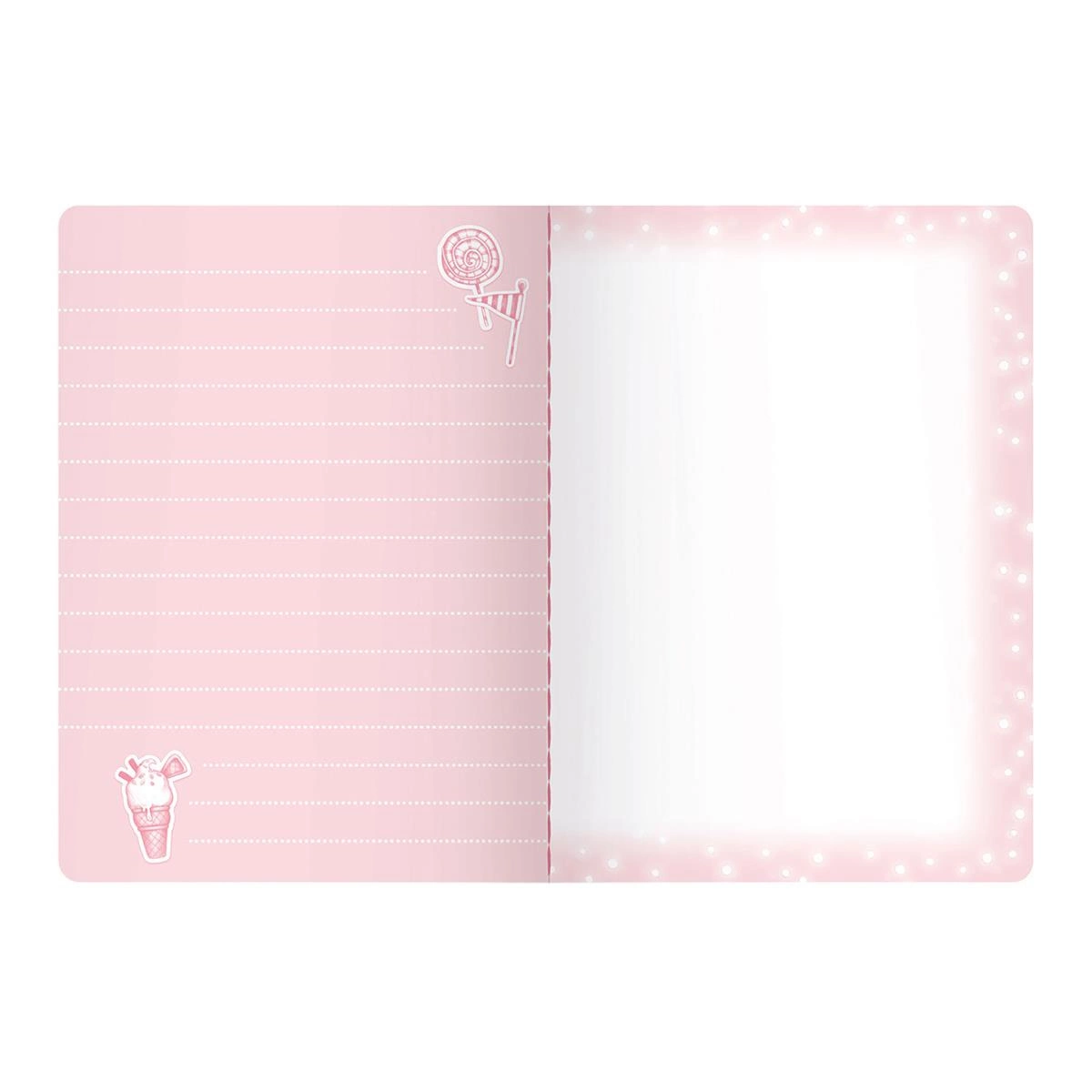 • Wewnątrz 30 kartek w linie oraz 30 kartek gładkich. Każda strona w pięknym kolorze ozdobiona wyjątkowymi grafikami Fairground.
