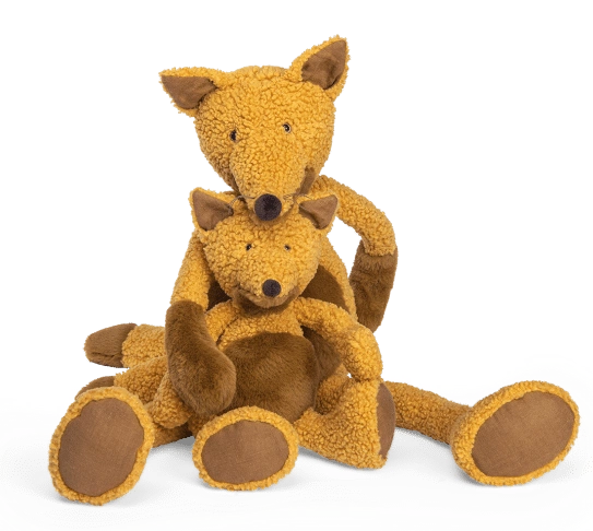 Mały pluszowy lis z kolekcji Les Baba Bou francuskiej marki Moulin Roty. Wykonany z miękkiego pluszu o ciemnożółtej barwie. Posiada długie łapy, które zachęcą dziecko do chwytania. Ma miękkie futerko i zabawny długi ogon. Na brzuszku posiada futrzany, ciemnobrązowy materiał, miły w dotyku. Urocza, wesoła mordka rozweseli maluszka. W ofercie znajduje się także tata lis, którego można sparować z małym liskiem.