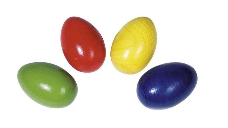 Drewniane jajko z sypkim materiałem wewnątrz do potrząsania.
