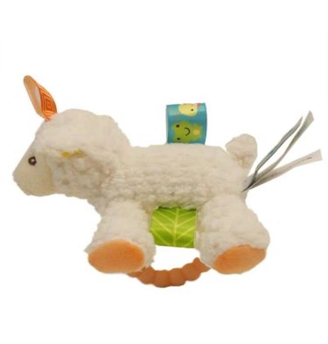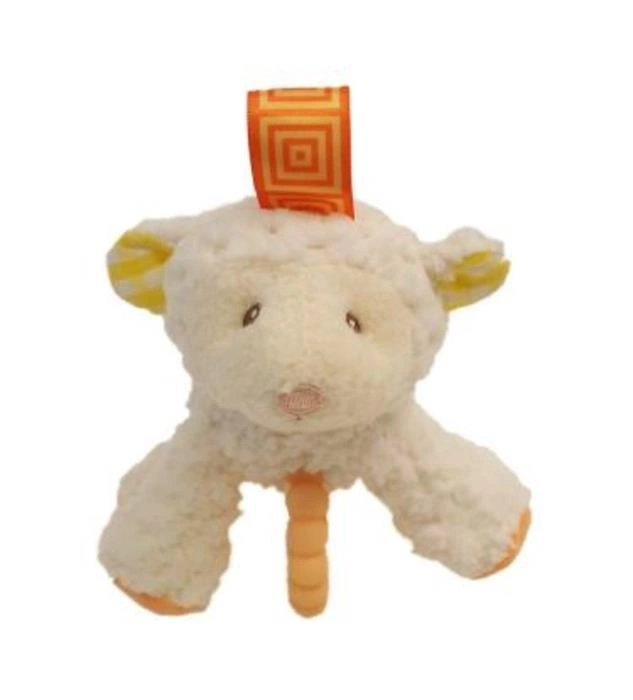- Miękka, pluszowa grzechotka w kształcie owieczki.