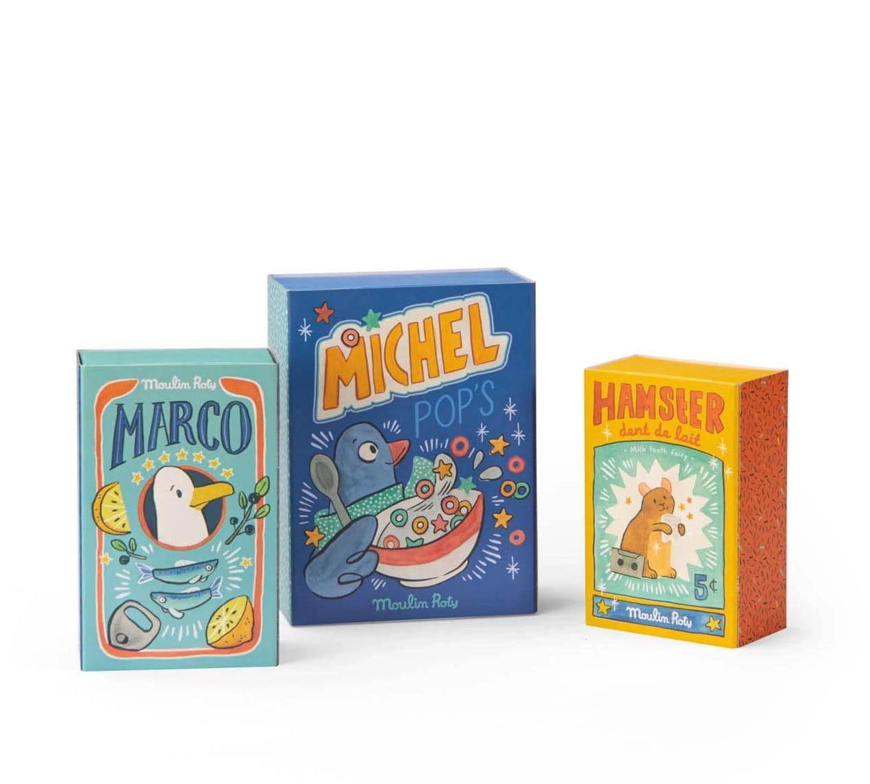 Chomik jest pakowany w ozdobne pudełko w stylu retro.