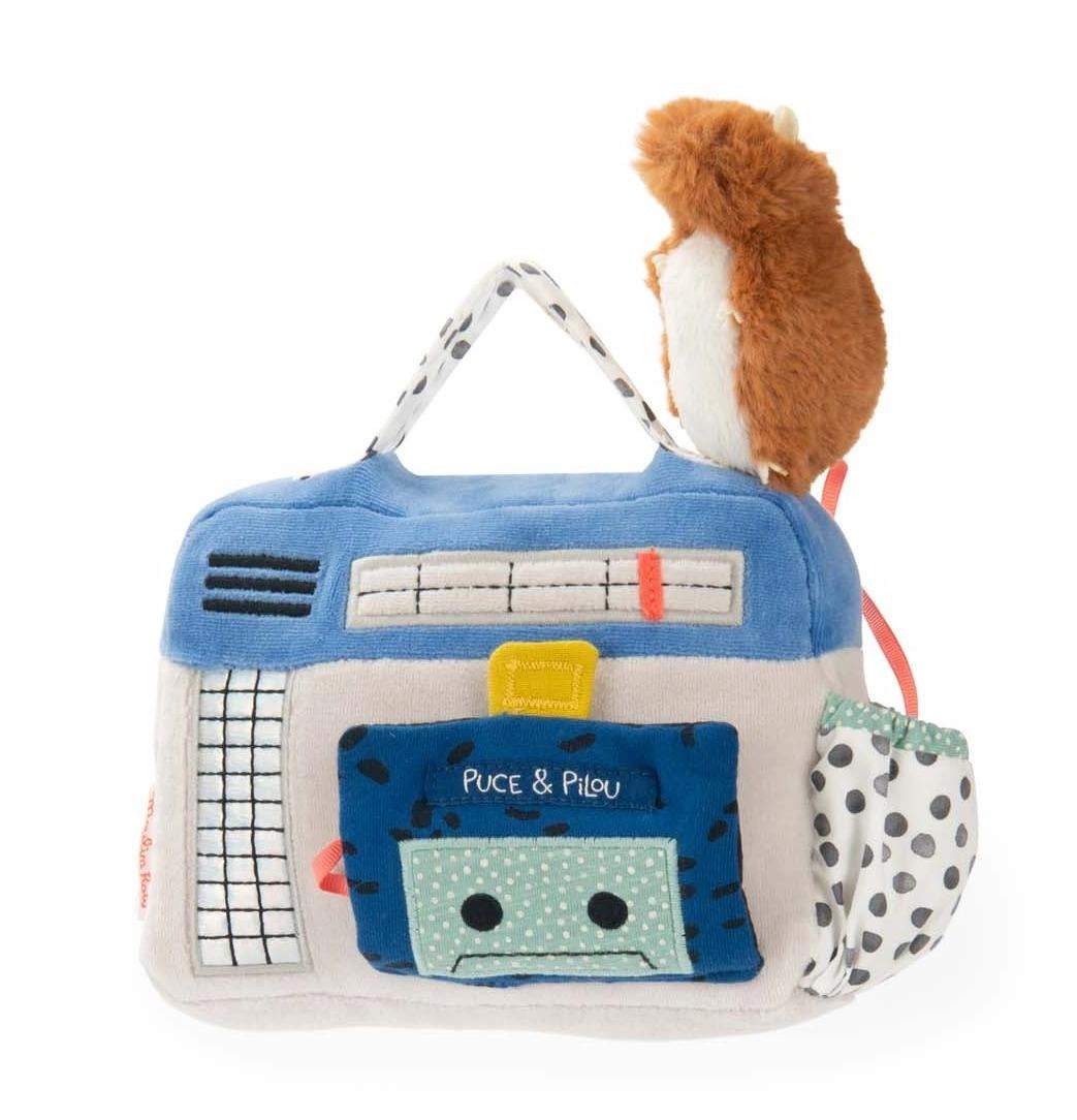 Muzyczna przytulanka w kształcie radia rozweseli każdego maluszka chętnego do zabawy. W środku maskotki znajduje się mechanizm grający melodię autorstwa francuskiego piosenkarza Étienne Daho. Radyjko posiada w kieszeni futrzanego przyjaciela - chomiczka. Zabawka pochodzi z kolekcji Puce & Pilou.