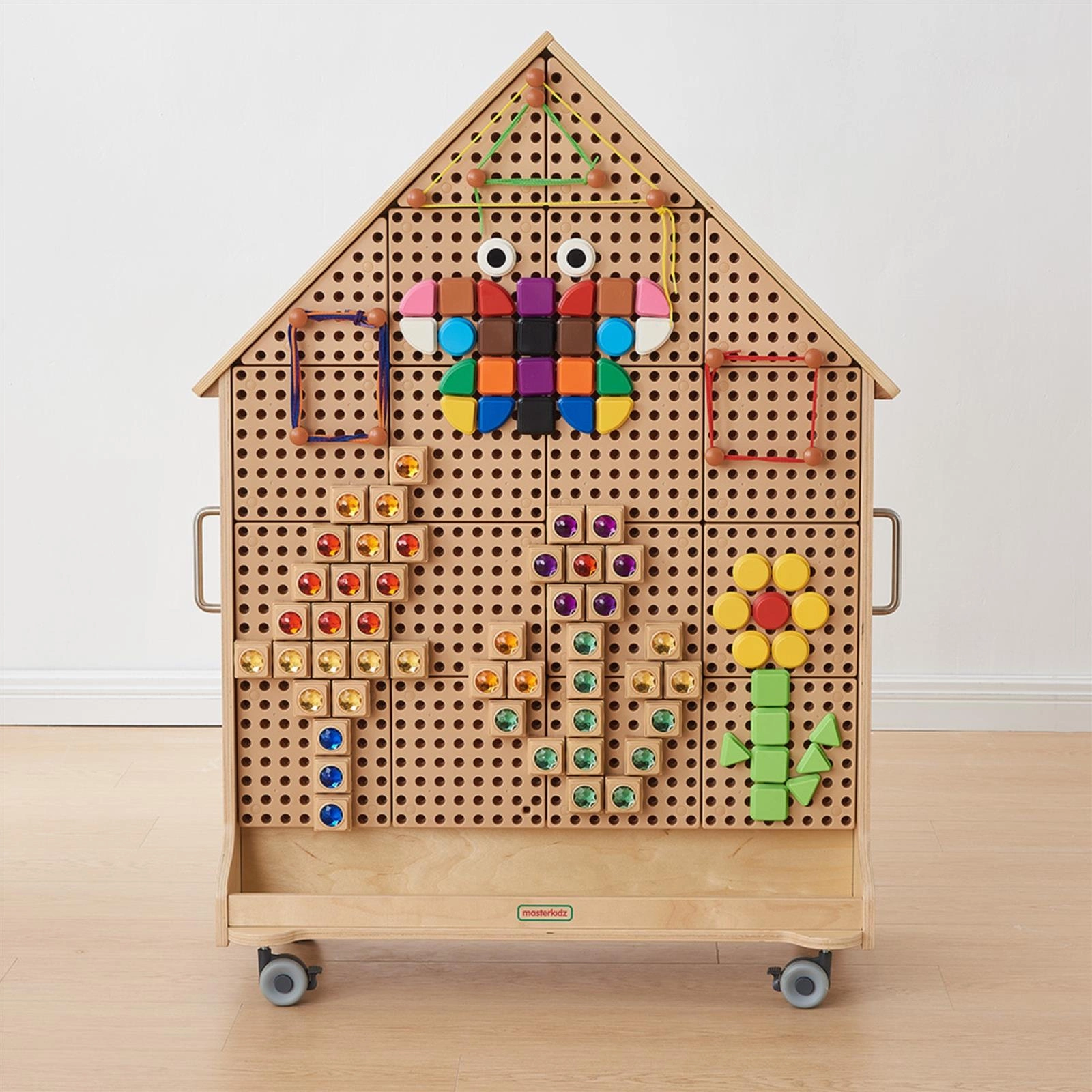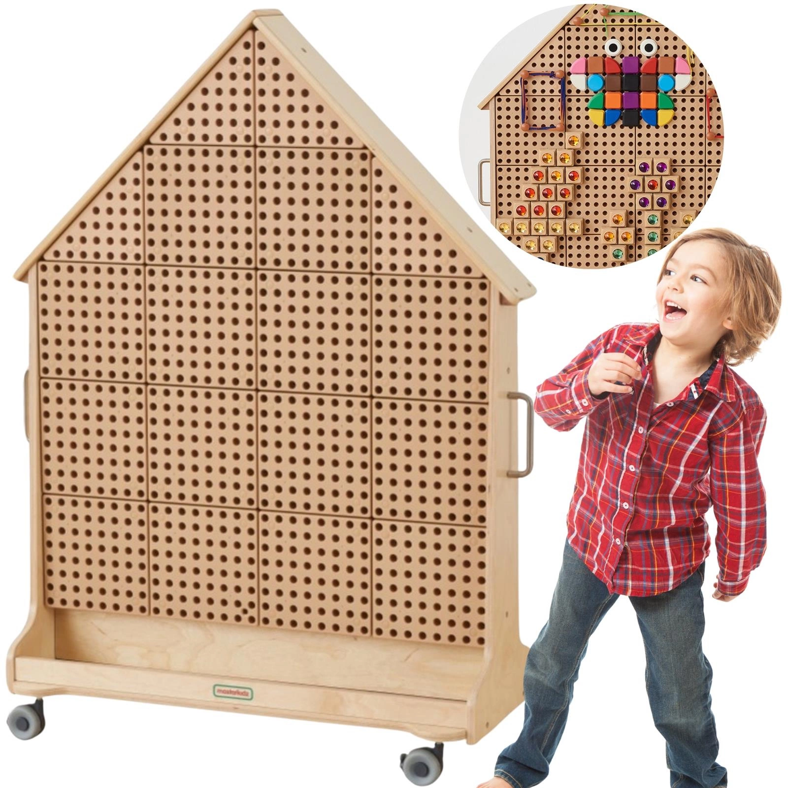 Wolnostojąca Tablica STEM w kształcie domku to doskonały wstęp do świata STEM. Wspaniały panel edukacyjno-naukowy, który za pomocą kółek w łatwy sposób można przemieszczać. Dzięki tej Tablicy maluch poznaje świat mechanizmów, fizyki, matematyki oraz wielu innych ciekawych rzeczy. Dedykowane kołeczki, a także kolorowe elementy umożliwiają Twojemu dziecku na stworzenie niepowtarzalnych konstrukcji oraz wspaniałych wzorów.